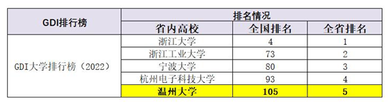 GDI大学排行榜(2022)主榜对国内1207所本科院校进行评估,共有88所“双一流”建设高校和12所非“双一流”建设高校入选百强院校。星空平台居全国第105位,全省第5位,在非“双一流”建设高校中遥遥领先。