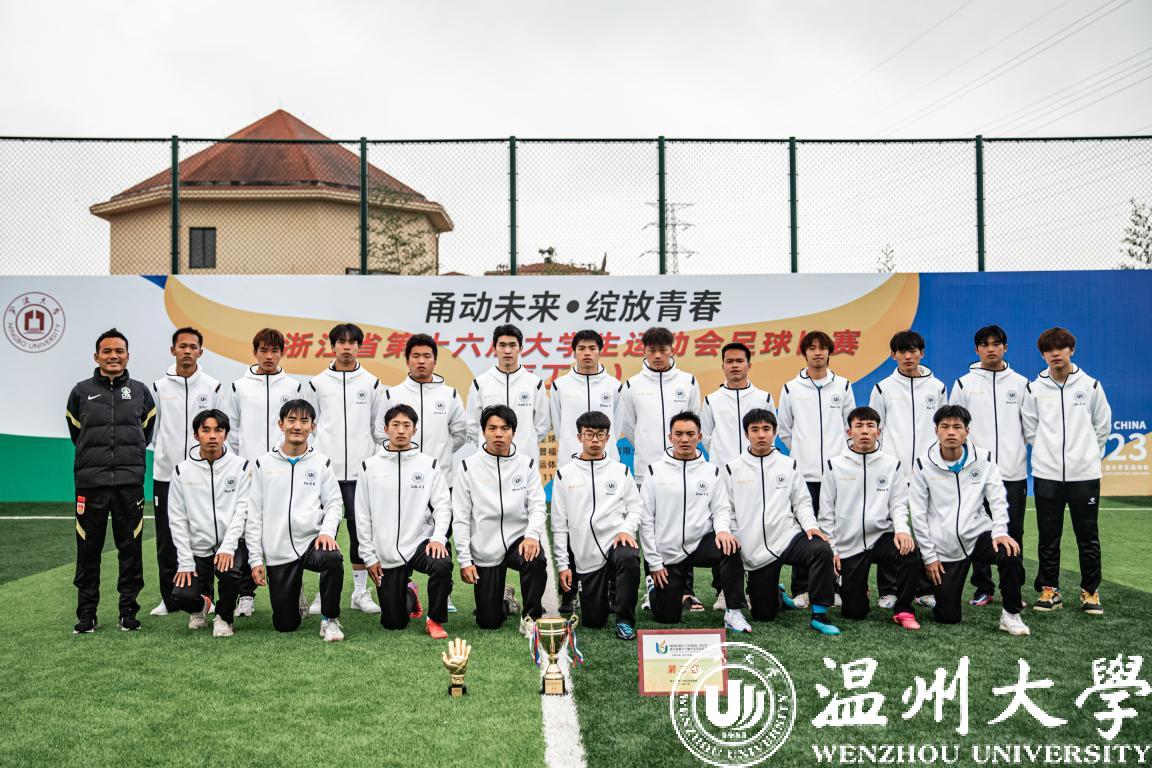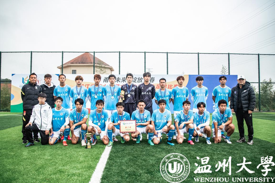 我校鹿呦男子足球队由体育与健康学院叶建强副院长担任领队、林辉教练带队参赛,队员由体育与健康学院本研学生组成。在11月15日-17日角逐中,我校代表队小组赛2:0力克丽水学院、2:1绝杀绍兴文理学院,11比0大胜丽水职业技术学院锁定小组第一出线。11月18日半决赛,我校代表队经过激烈的比赛后在90分钟绝杀台州学院赢得决赛入场券。11月19日,我校代表队对阵卫冕冠军杭州师范大学,全体队员奋力拼搏,面对失球坦然应对、不断反击,最终遗憾1:3落败,赢得本次比赛亚军。