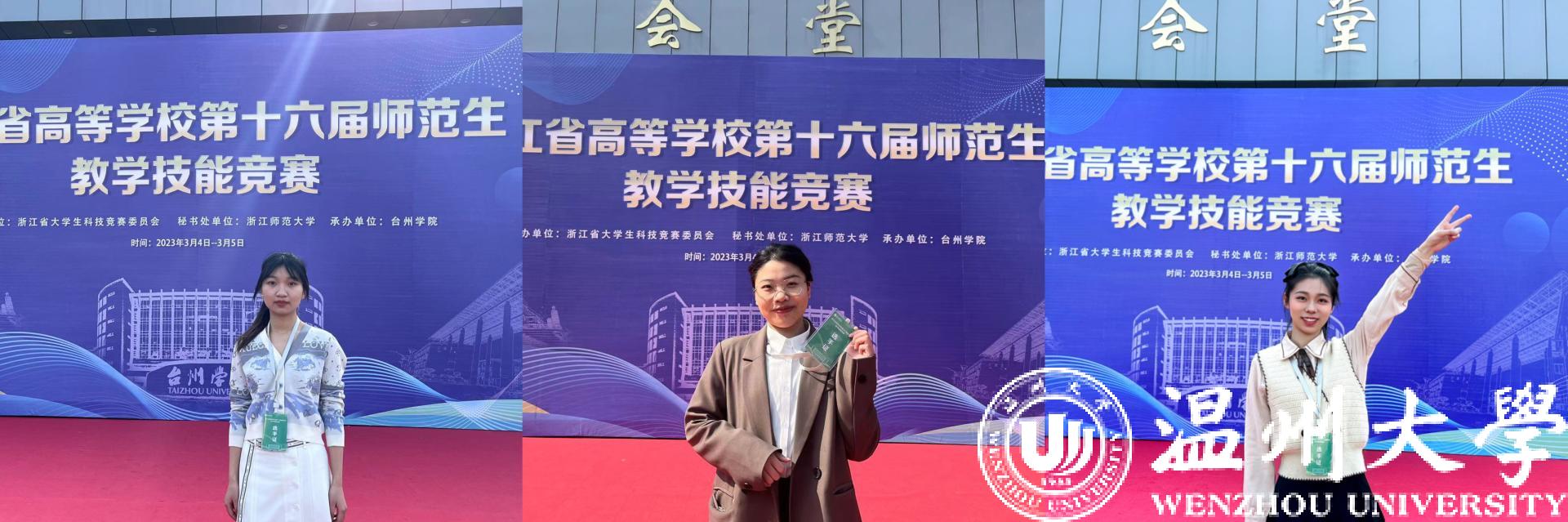 3月4至5日,由浙江省大学生科技竞赛委员会主办的第十六届浙江省高等学校师范生教学技能竞赛在台州学院举行。全省共有25所院校的336位选手参加比赛。我校30名参赛选手中27人获奖,其中,3名同学获一等奖,8名同学获二等奖,10名同学获三等奖,6名同学获优胜奖,获奖总数全省排名第二,再获该项赛事佳绩。