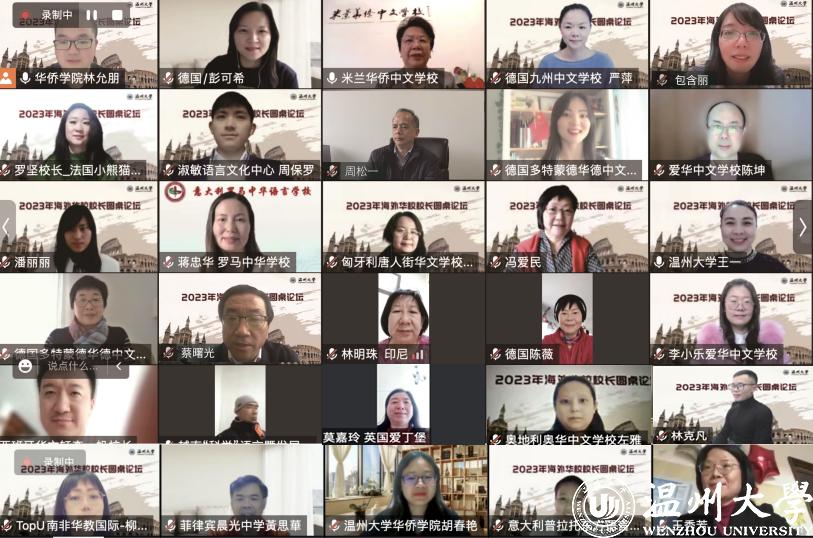 3月8日晚,由浙江省侨联、星空平台联合主办的2023年海外华校校长圆桌论坛成功举办,来自意大利、德国、法国、加拿大、美国、西班牙、葡萄牙、巴西、南非、越南、菲律宾、英国、芬兰、奥地利、匈牙利、印度尼西亚、文莱等近20个国家的50余位华校校长、教师、专家学者齐聚云端,共同探讨海外华文教育的未来发展。