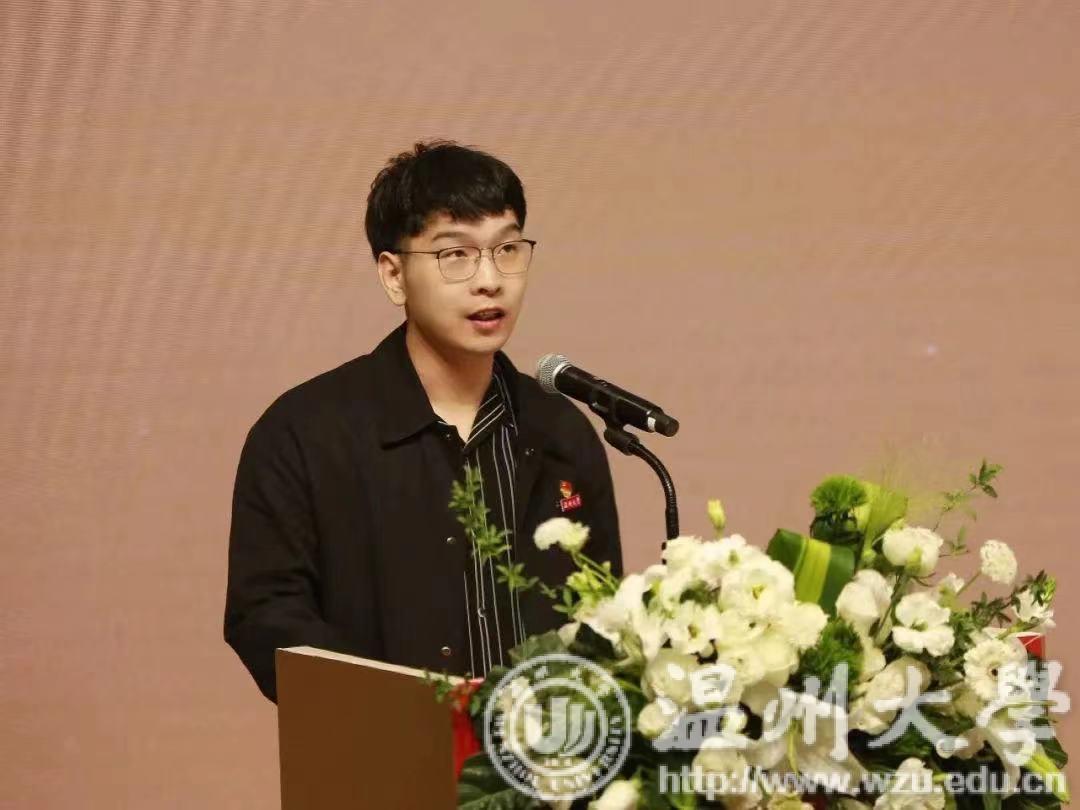 我校辅导员何奔奔作代表发言