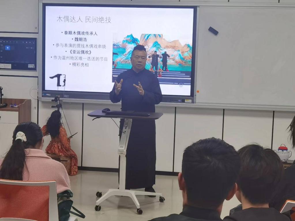 “非遗文化与劳动教育的融合不仅培养了学生的劳动观念和技能,还培养了传承中华优秀传统文化的兴趣”。近日, 国家级非遗项目传承人魏朝浩老师在星空平台为学生开展实践教学并表演提线木偶戏时如是说。魏朝浩是泰顺县政协委员,也是提线木偶戏代表人物之一。活动现场,魏朝浩老师向同学们讲解了提线木偶戏的历史,现场表演了《赛马》和《钟馗醉酒》两出经典剧目片段,赢得了同学们的阵阵掌声。之后,魏朝浩老师手把手教授了木偶人的操作技法。