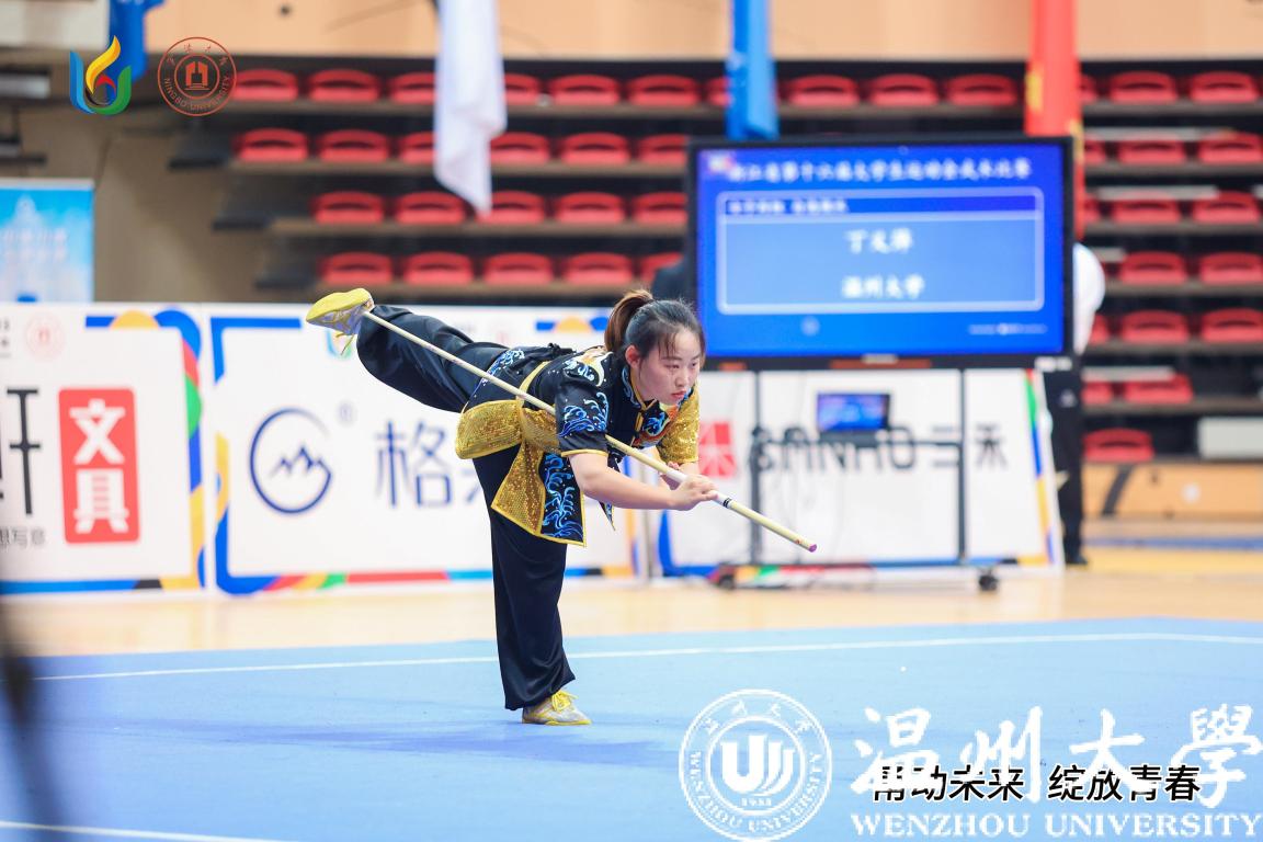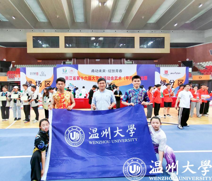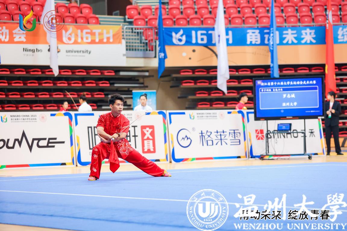 本次比赛由浙江省教育厅、浙江省体育局主办,浙江省学校体育协会执行,宁波大学承办。共有38所本科院校,48支代表队,410多名运动员、教练员、领队参赛,设长拳、南拳、太极拳、刀、枪、剑、棍7个竞赛项目。我校体育与健康学院叶建强副院长担任领队、周义义老师担任教练,队员由我校体育与健康学院、外国语学院4名本研运动员组成。
