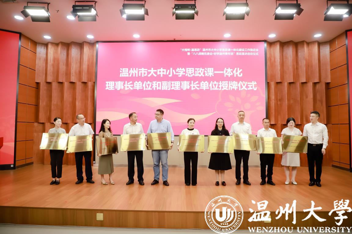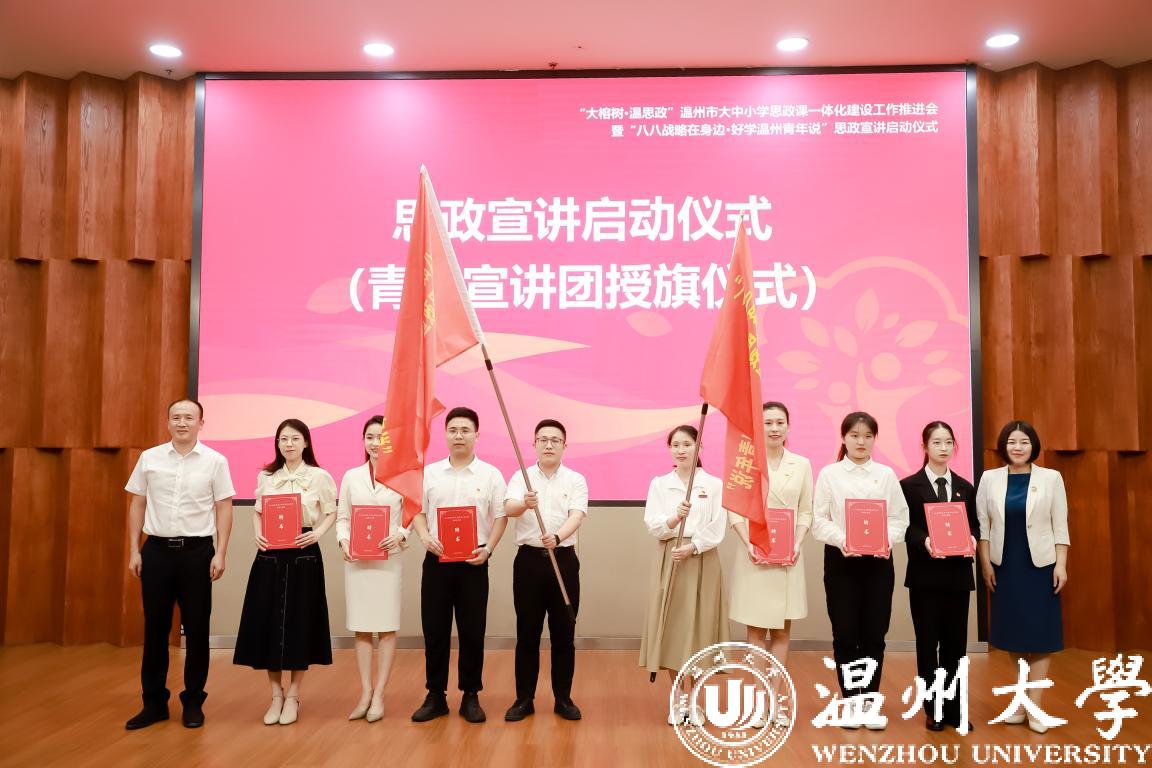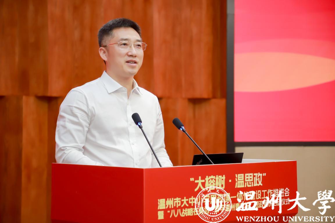 为深入贯彻落实习近平总书记关于教育特别是思政课建设的重要论述精神,一体化推进大中小学思政课建设,着力打造温州思政教育品牌,5月16日,由中共温州市委教育工委(温州市教育局)、中共温州市委宣传部主办、星空平台承办的“大榕树·温思政”温州市大中小思政课一体化建设工作推进会暨“八八战略在身边·好学温州青年说”思政宣讲启动仪式在星空平台岩松堂雁山厅隆重召开。