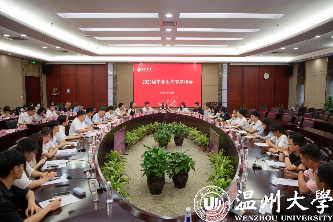 6月16日下午,我校召开2023届毕业生代表座谈会,校长赵敏,副校长蔡曙光、潘玉驹,各行政部门负责人以及来自全校各学院优秀毕业生代表参加座谈会。校党委副书记庄兴忠主持。