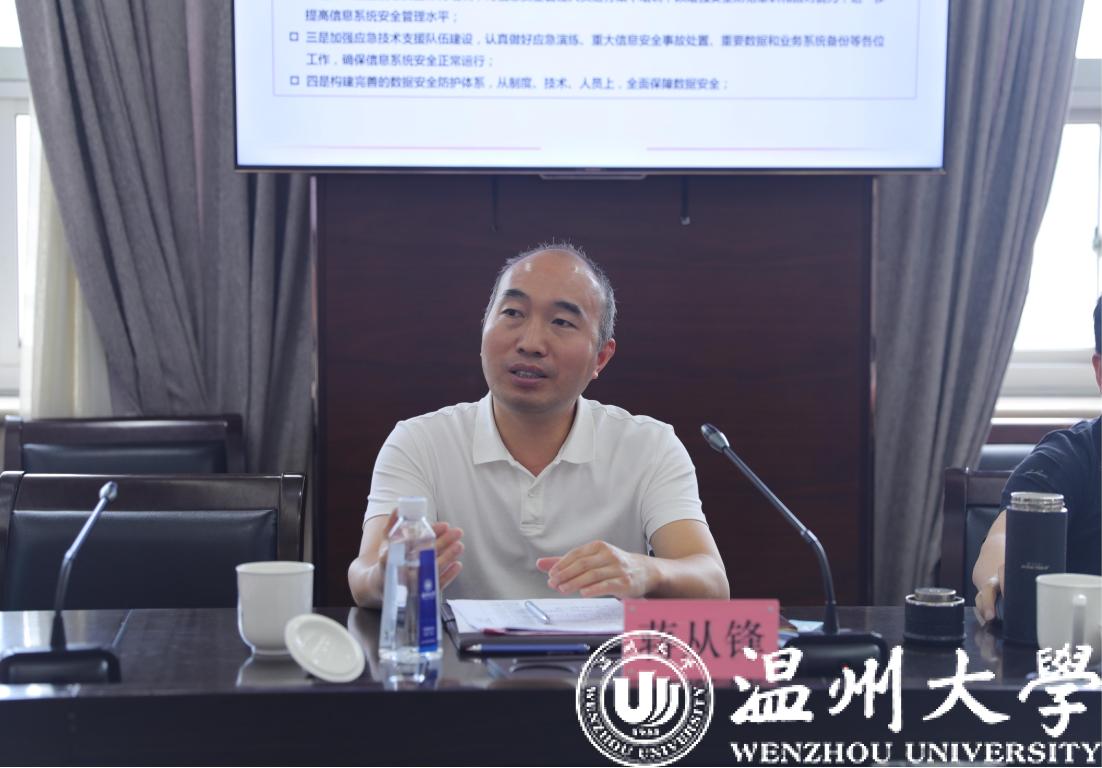 为进一步压实全省教育系统网络与数据安全主体责任,提升网络与数据安全保障水平,保障杭州亚运会和亚残会期间全省教育系统安全稳定运行。8月2日上午,省教育厅、省委网信办等组成的联合检查组蒋从锋、辛均益、梁鹏、王晓冬等一行13人莅临我校开展“网络安全与数据安全”专项检查。副校长蔡曙光出席会议。