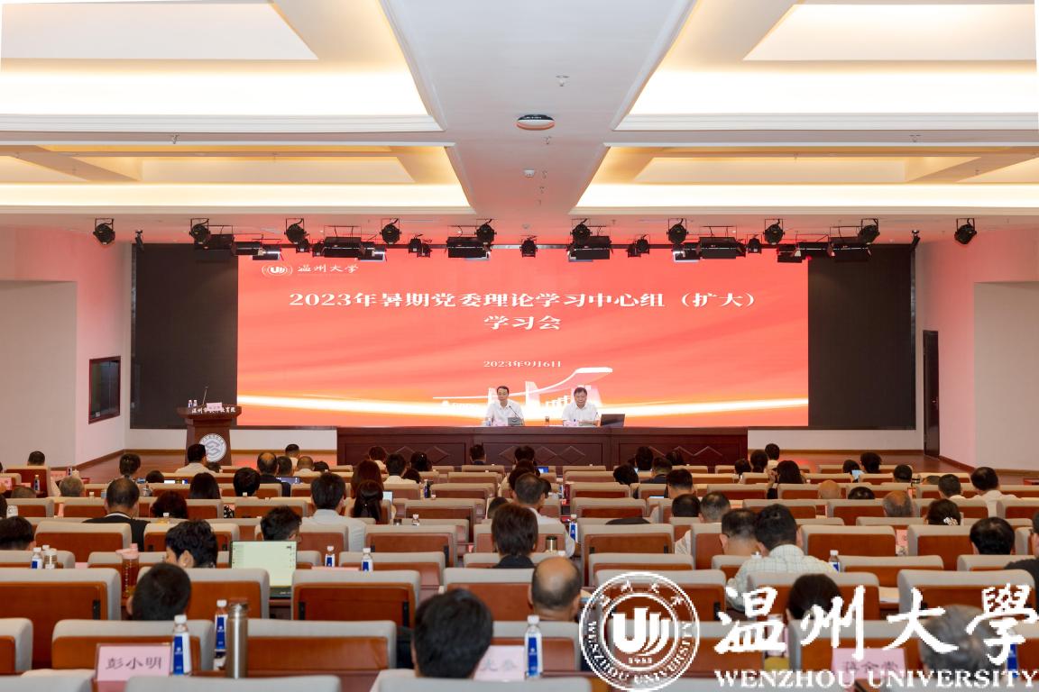 9月6日至7日,我校召开2023年暑期党委理论学习中心组(扩大)学习会。会议围绕深入学习习近平新时代中国特色社会主义思想,对照主题教育“学思想、强党性、重实践、建新功”总要求,对标省委高水平大学建设重大部署,进一步分析短板、强化措施、攻坚克难,凝聚建设高水平大学、争创“双一流”高校强大合力,为建设教育强国、助力浙江“两个先行”和温州续写创新史作出更大贡献。
