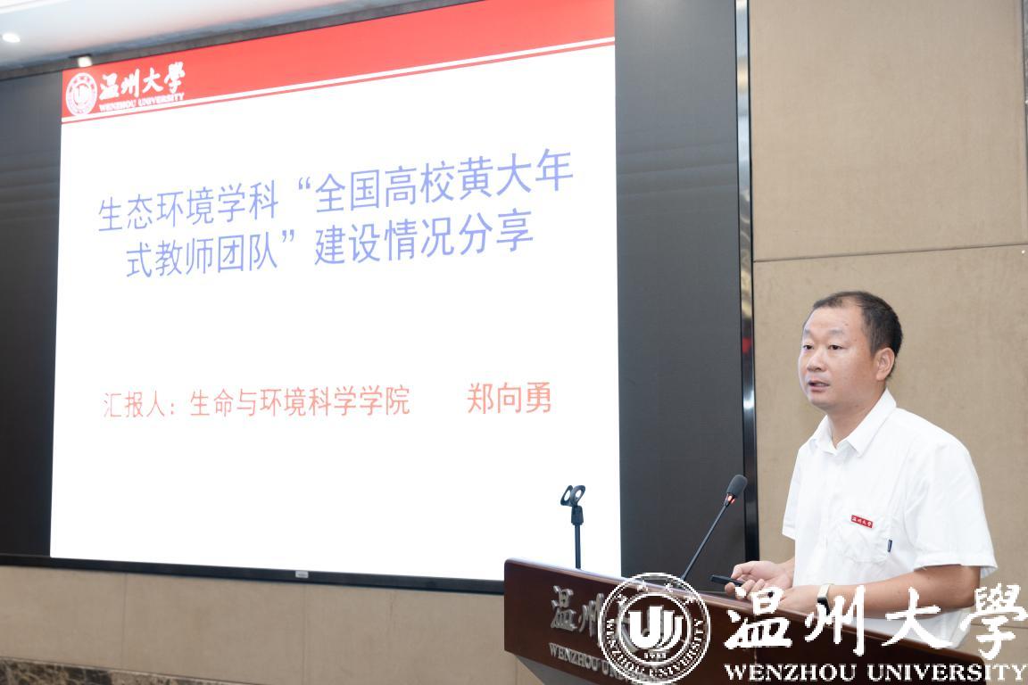 第三批“全国高校黄大年式教师团队”入选团队——生环学院的“生态环境学科教师团队”作事迹宣讲。团队主要成员详细介绍了团队师德师风、教育教学、科研创新、社会服务、团队建设等方面的工作实绩和突出事迹,充分展示了我校黄大年式教师团队的建设成效,以及教师爱岗敬业、无私奉献、踔厉奋发、开拓进取的良好精神风貌。