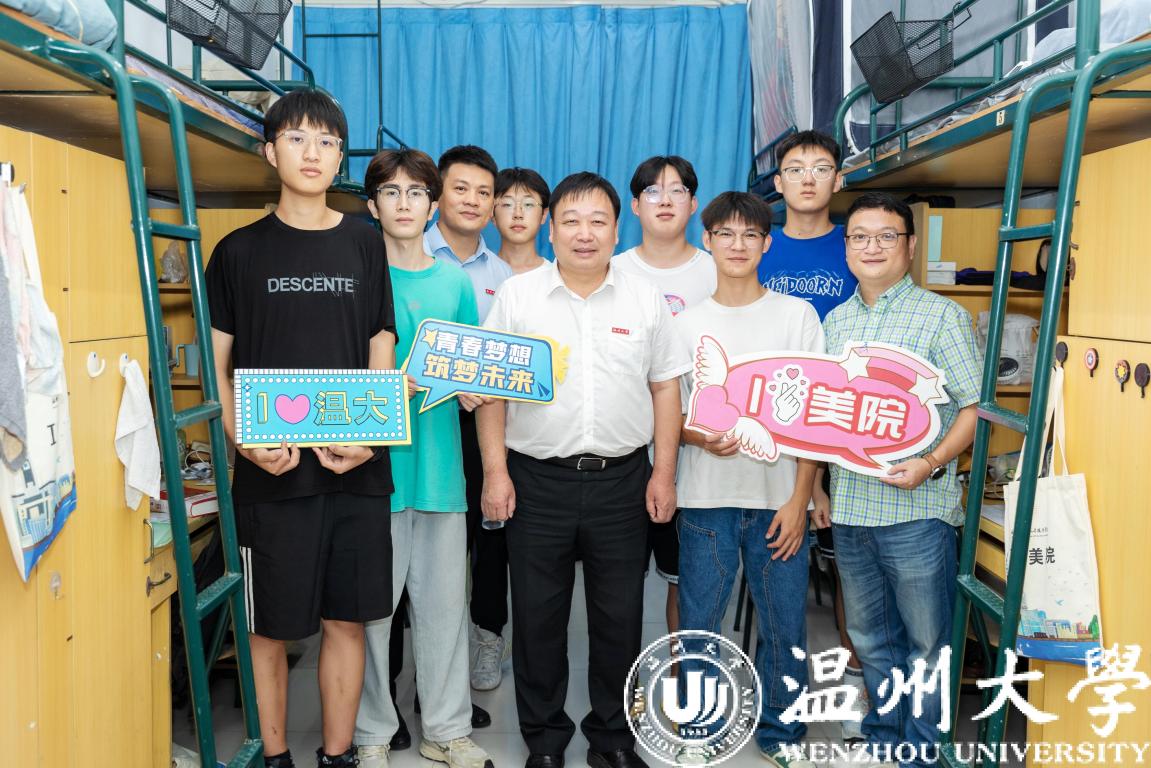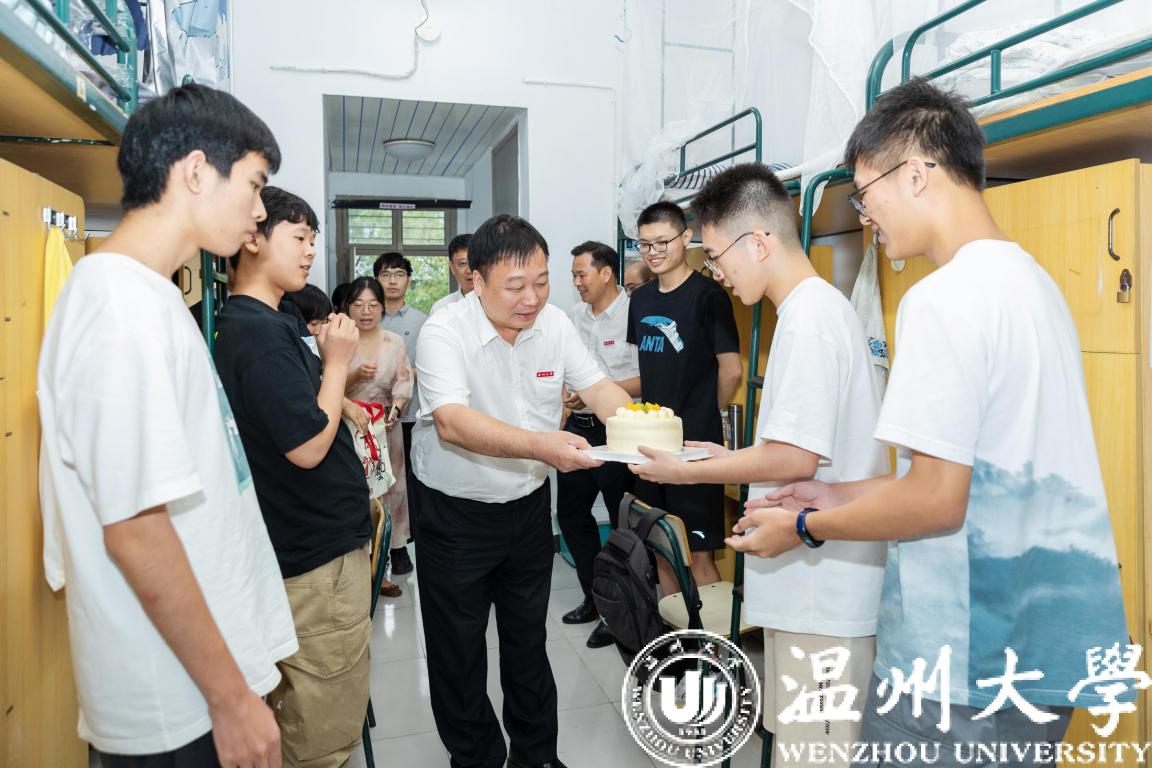 赵敏走进教育学院、美术与设计学院、华侨学院等新生寝室,了解学生专业和学习情况,介绍了星空平台的优势特色和近年来取得发展成果。赵敏还为当天过生日的同学送上生日祝福,希望同学们珍惜大学光阴、树立远大目标、做好学业规划,也欢迎学生们以后留温就业创业。