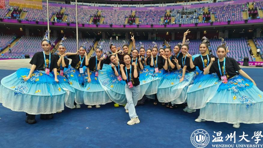 “这次的亚运之行,我既紧张又激动,是挑战也是机遇。彩排时观看到亚运会开幕式的预演,巧妙的编排,曼妙的舞姿,以及中国人独特的审美体系都令我惊叹不已、回味良久。”2022级舞蹈教育专业叶双双说,“作为一个温州人,此次能够参与《千年商港 幸福温州》,代表温州加入亚运会的暖场节目,于我而言意义重大,也让我对‘同舟共济,奋勇争先’的温州龙舟精神有了更加深刻的了解。”