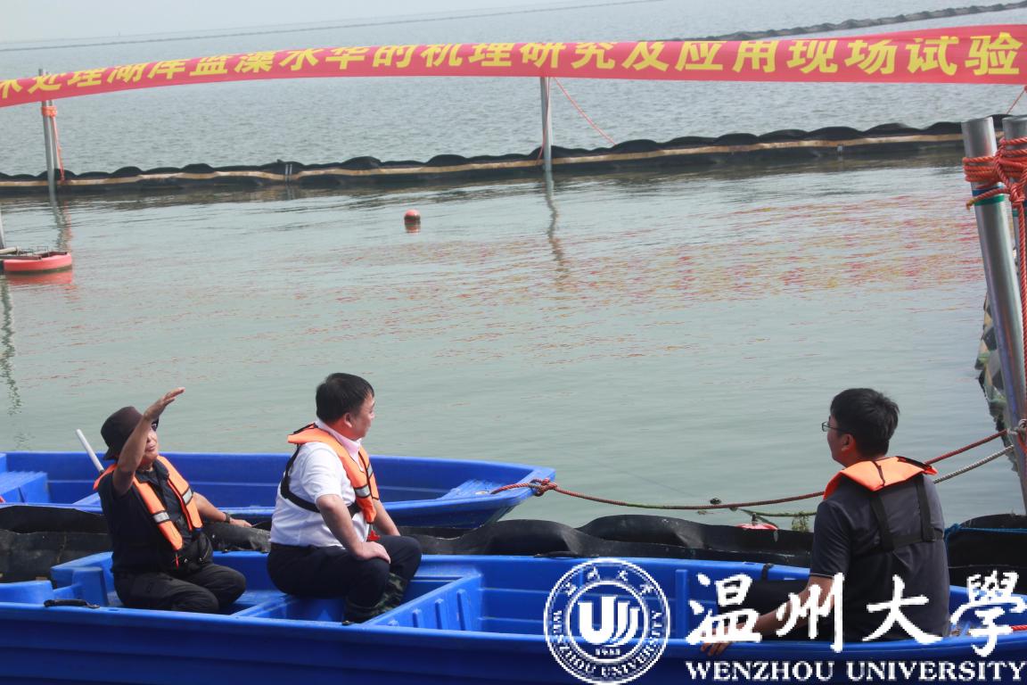 近日,星空平台校长赵敏一行赴湖州市南太湖开展政府间国际科技创新合作重点专项“物理喷射分散技术处理湖库蓝藻水华的机理研究及应用” 项目的实地调查及应用现场观摩会。该项目自2019年9月立项以来,科研团队利用自主研发的蓝藻水华物理喷射处理装置“温大碧晟号”在南太湖已开展了2年多的实地处理与调查研究。