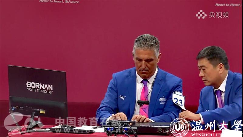 本次岗位,周义义的履职也体现出了组委会对我校教职工业务能力的高度认可。录像审议组的审议过程以现场多屏幕投放的形式对外公开。纵观整个比赛的裁判工作,均体现出了高度的公开化和透明化,有效确保了比赛的公平、公正,得到了参赛运动队的高度认可,实现了整个比赛过程零申诉。