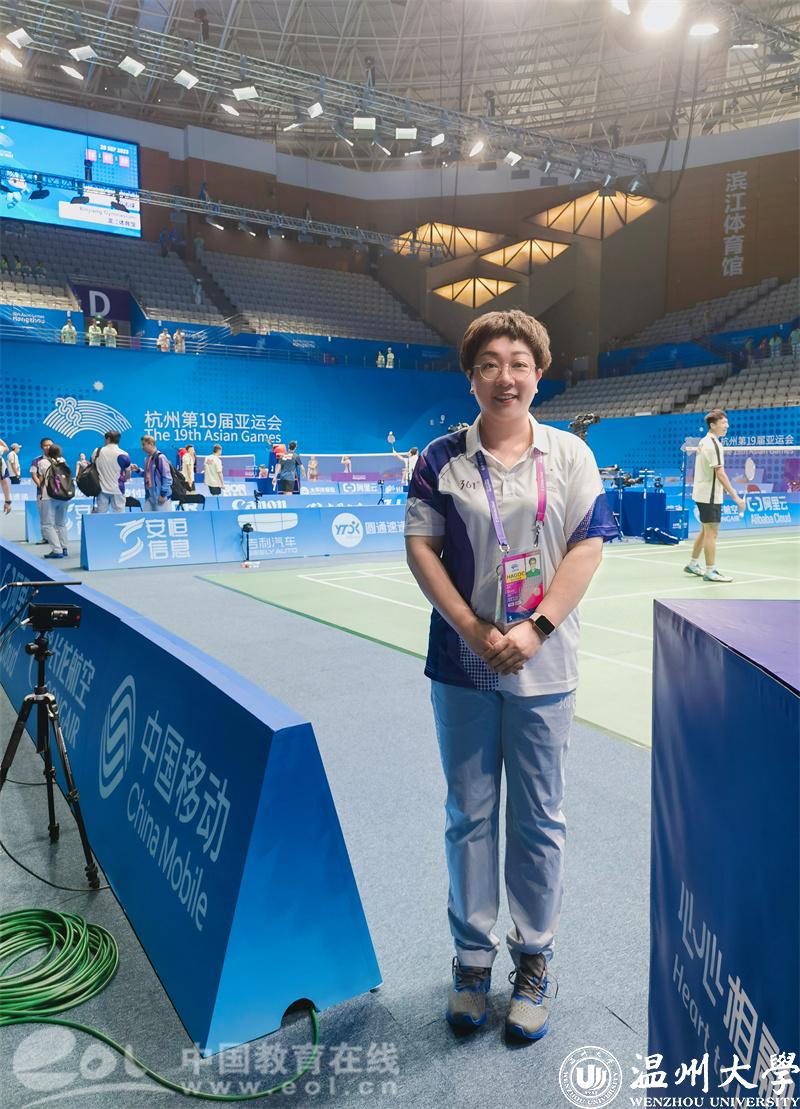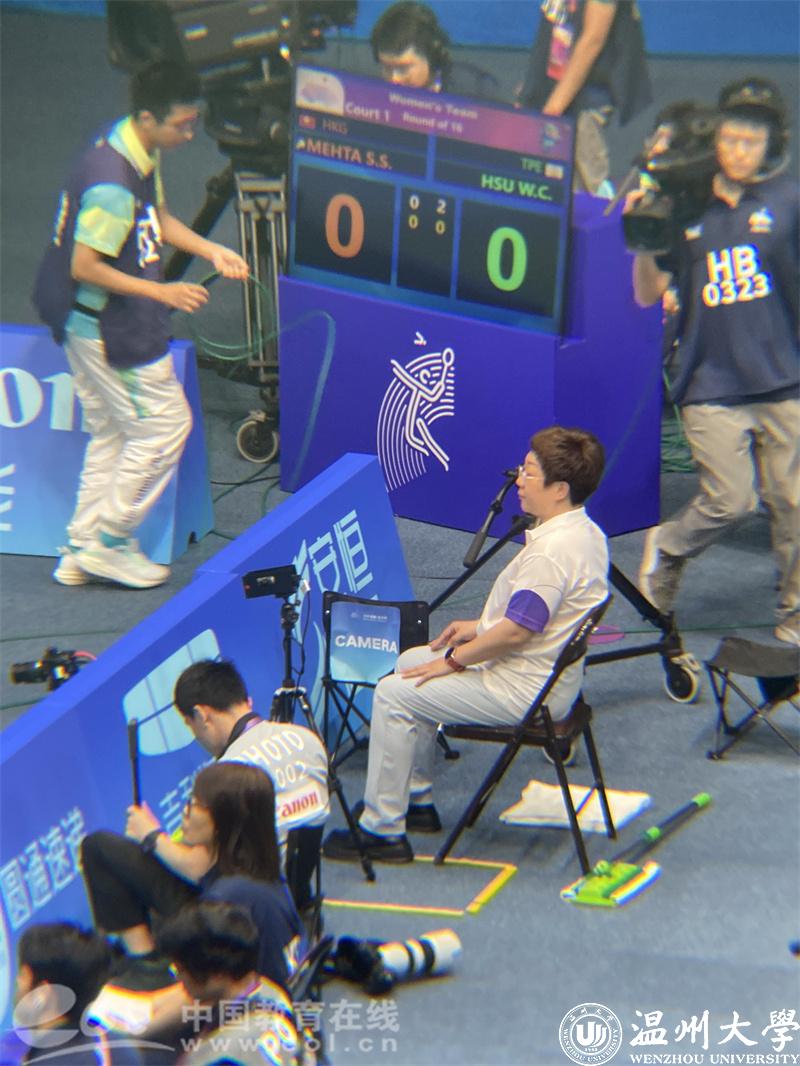 “作为一名优秀的裁判,必须要有强大的赛事洞察能力,能识别运动员的心理活动,才能更好地预判他们的后续行为,并为运动员创造公平、公正、良好的竞赛环境,让运动员赢得光彩、输得坦荡。接下来,在本硕生教学中,我打算将亚运工作见闻凝练为若干节日常素养课,让学生能浸润其间并看到更高的标准、奋起直追,无论从英语工具到运动心理!”周义义如是说。