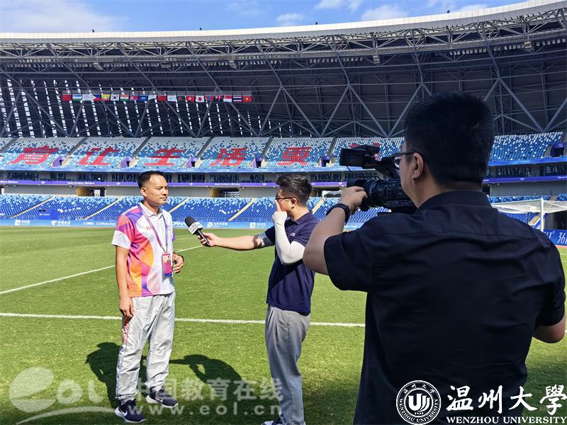 日前,温州奥体中心场馆竞赛技术主任林辉在温州奥体中心接受CCTV13频道《亚运1+1》的专访,讲述杭州亚运会女子足球1/4决赛,日本VS菲律宾比赛过程中因暴雨雷电天气中断的过程和场馆的处置。