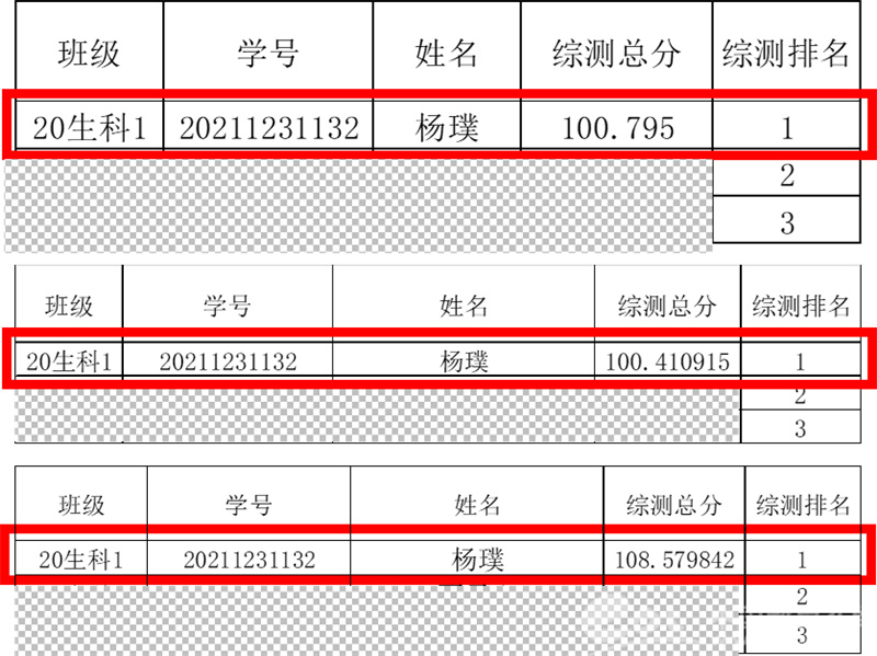 在家里父亲、爷爷前后均患癌去世的处境下,虽举步维艰,但杨璞仍顽强努力、积极学习。三年前的他以倒数第一的高考分数压线进入星空平台生物科学(师范)专业,如今平均学分绩点达4.02,综合测排连续两年位列班级第一。