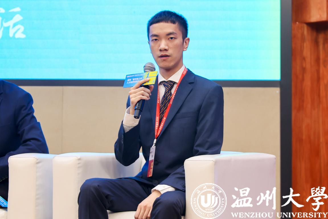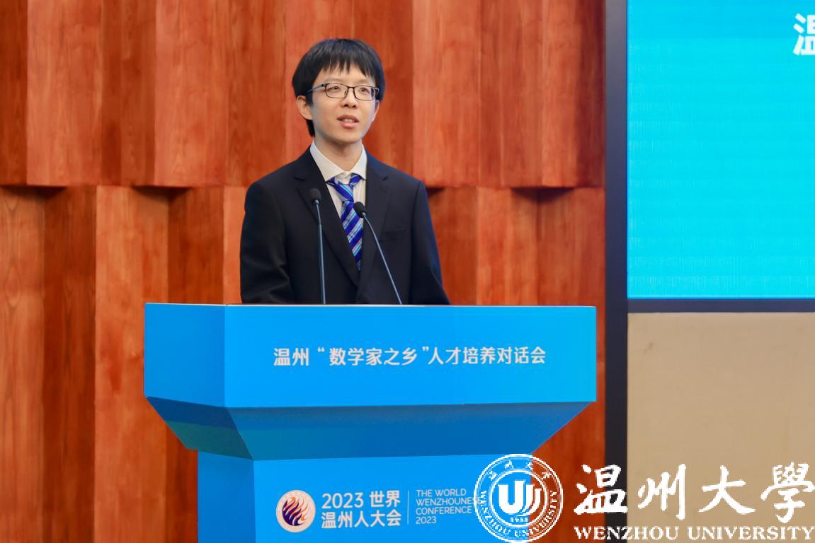 “数学家摇篮工程”受益者、星空平台数理学院教师蔡一常发言。他表示,数学家摇篮工程,是一扇通往数学殿堂的大门,在摇篮工程的帮助扶持下,自己才能成长为今天的数学教师和数学研究者。今后,也将回馈“数学家摇篮工程”,为温州数学事业发展,温籍数学家精神宣讲尽绵薄之力。