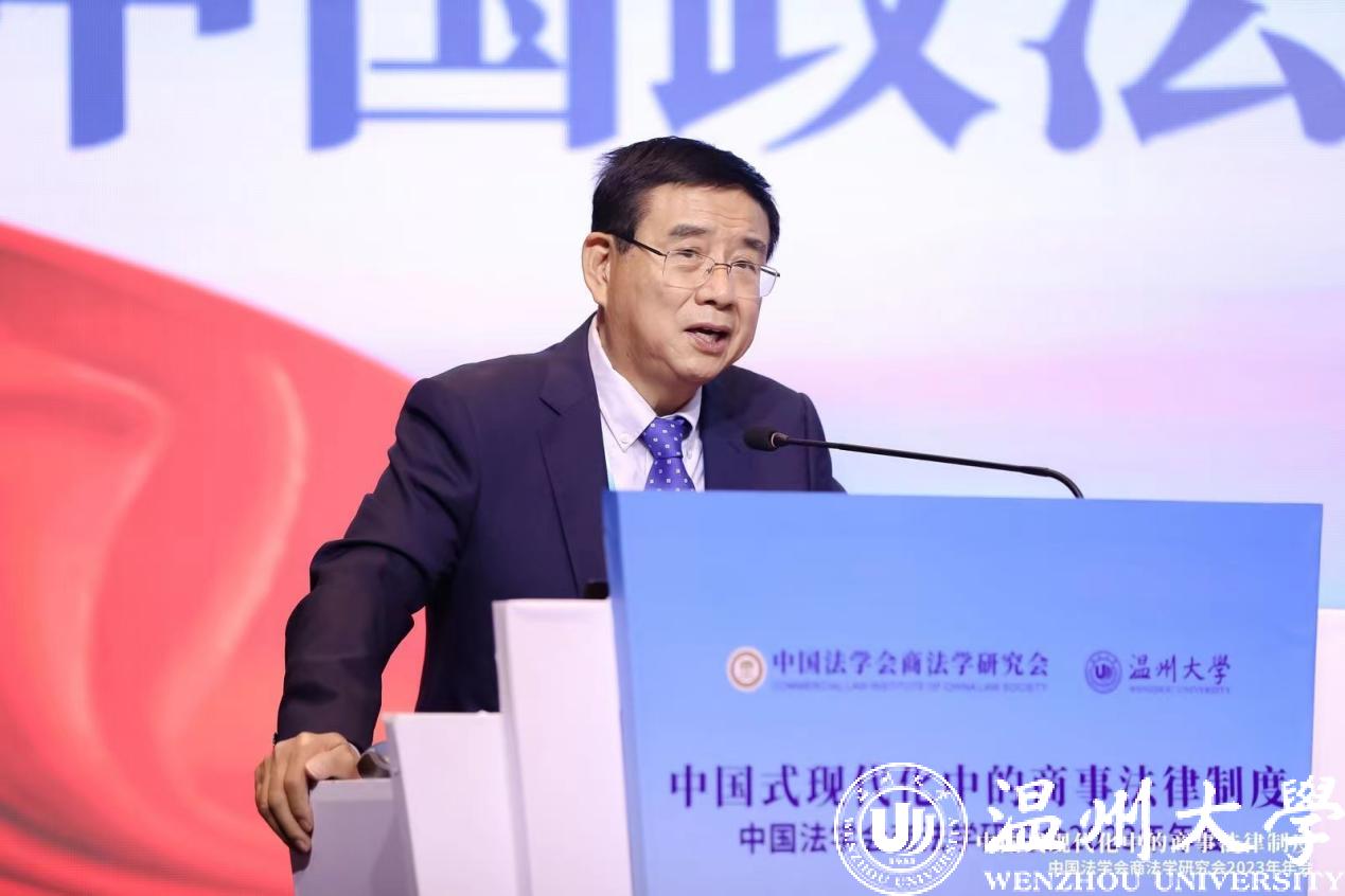 中国法学会党组成员、副会长兼秘书长张鸣总结了研究会过去的工作并表示感谢。他指出,今年中国法学会商法学研究会围绕公司法修订等具有重要理论价值和现实意义的问题进行探讨,是商法学研究会贯彻落实党的二十大精神的一个重要举措,充分体现了商法学研究会各位同仁心系国家、服务大局的使命担当。同时,他对商法学研究会的工作提出三点希望:一是深入学习贯彻习近平法治思想。紧紧围绕解决商法学研究与实践中的重大前沿问题,在解决商事法律制度与营商法治环境建设上面多下功夫,密切关注社会主义市场经济中的新情况、新问题。二是坚持守正创新,努力开创新时代商事法治建设新局面。商法学研究会应当紧紧抓住历史机遇,进一步发挥研究会智囊团、思想库、人才库的重要作用,从商法层面对重大前沿问题进行直接回应和深入研究,积极构建中国商法学自主知识体系,不断推动商法学理论的创新与发展。三是进一步加强人才队伍建设,不断挖掘商法学领域的青年人才。继续加大对商法学青年学者的支持力度,为青年学者提供学术交流和展示自我的平台,打造一支政治立场坚定、理论功底深厚、业务能力突出、作风素质优良的人才队伍。四是要深化商事制度改革,激发市场活力,坚持以良法促发展,用制度规则来固化改革成果。
