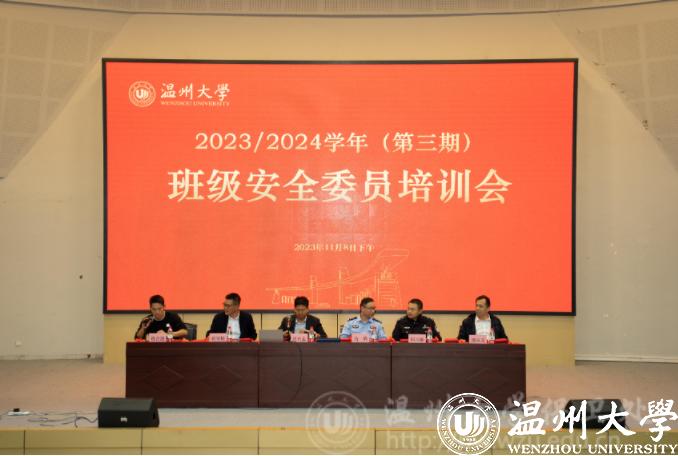 11月8日下午,我校成功举办第三期班级安全委员培训会。校党委副书记庄兴忠出席并致辞,高教园区派出所所长詹峰、交警四大队八中队副中队长邱强楠、校党委宣传部、保卫处负责人参加并联合主讲,各学院组织安全委员及相关辅导员近400余人参会。培训会由校保卫处副处长钱合激主持。
