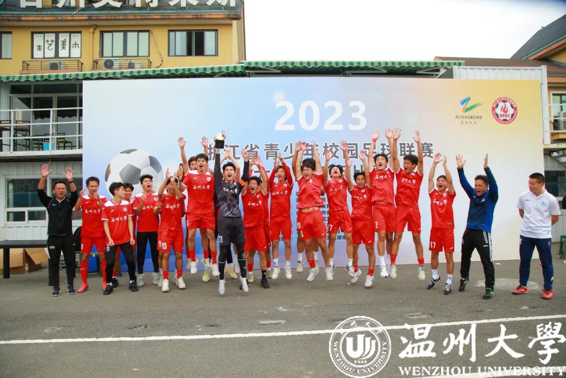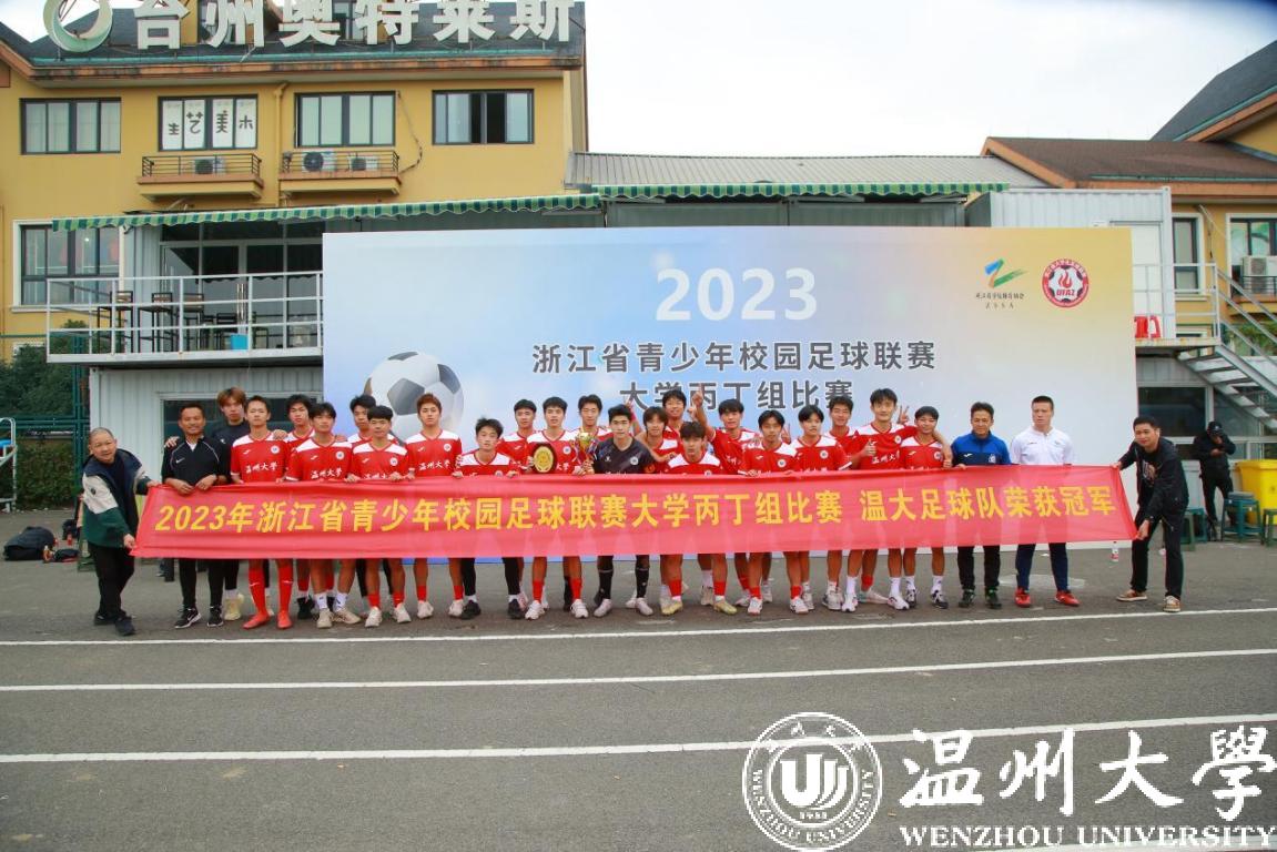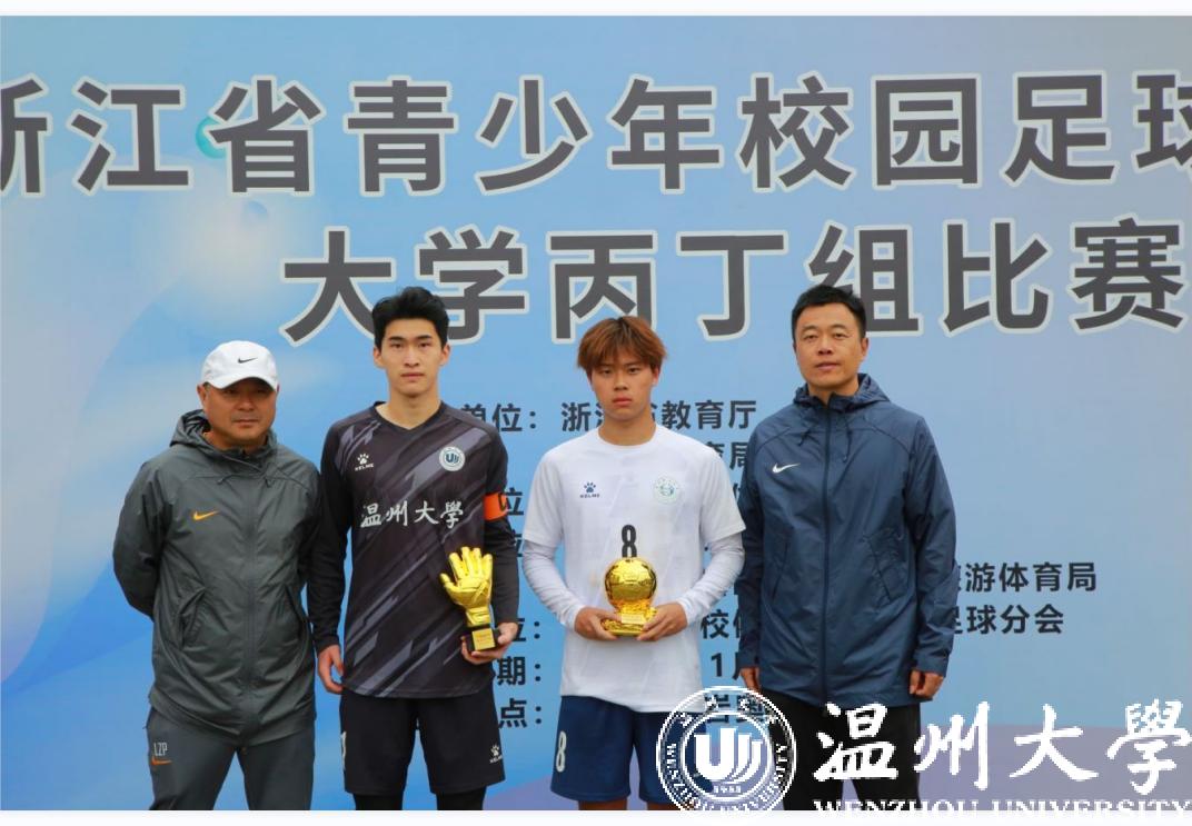 11月7日,2023浙江省青少年校园足球联赛大学丙丁组比赛在台州市黄岩区落下帷幕,我校鹿呦男子足球队奋力拼搏,以五战全胜的战绩勇夺男子丙组比赛冠军。体育与健康学院教练林辉老师荣获“优秀教练员”荣誉称号、队长潘柱豪获本次联赛唯一“最佳门将”称号、队员董文晖获“最佳射手”荣誉称号、队员叶旭凯、许晨、饶文韬、舒安获“优秀运动员”荣誉称号。