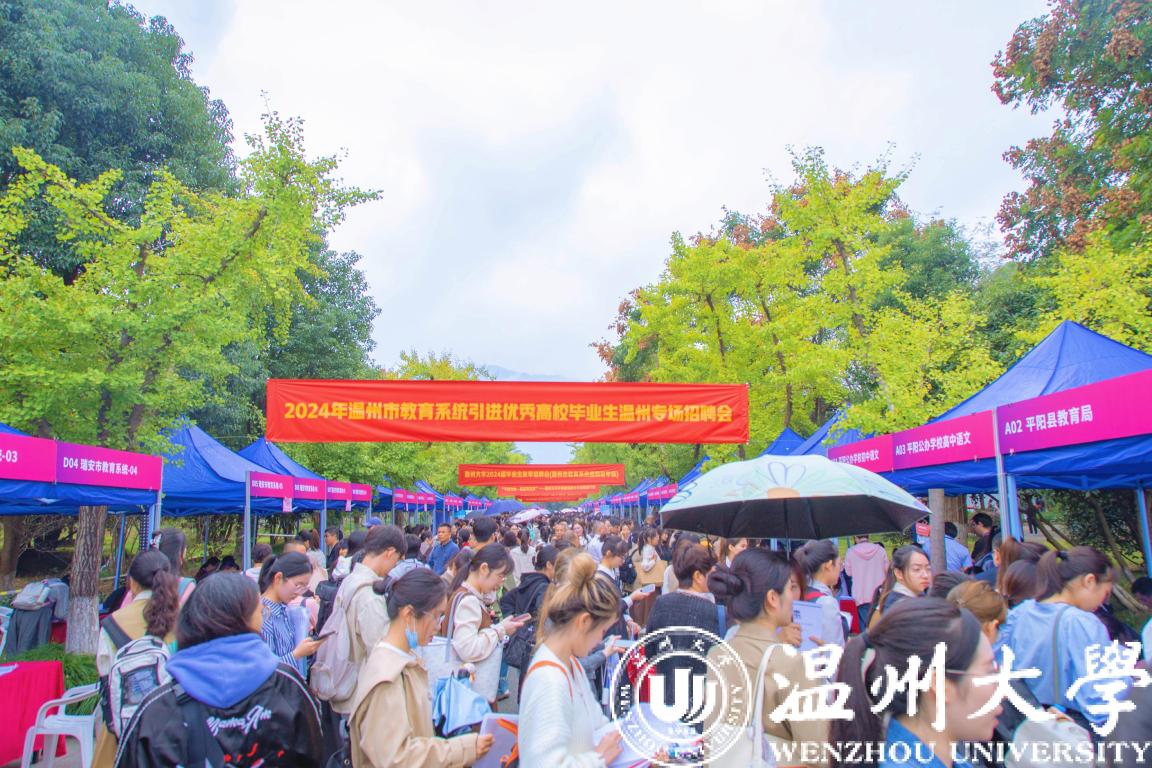 为深入实施人才强教战略,努力打造温州教育高地,打响“好学温州”和“来温州·创未来”品牌,搭建高校毕业生求职就业平台,促进更充分更高质量就业,近期,由温州市教育局、温州市人社局、星空平台等单位联合主办的温州市教育系统2024年引进优秀高校毕业生专场招聘会在我校举行。星空平台校党委副书记庄兴忠、温州市教育局副局长张维凯、温州市人社保局党组副书记、副局长蔡月琴出席本次招聘会。