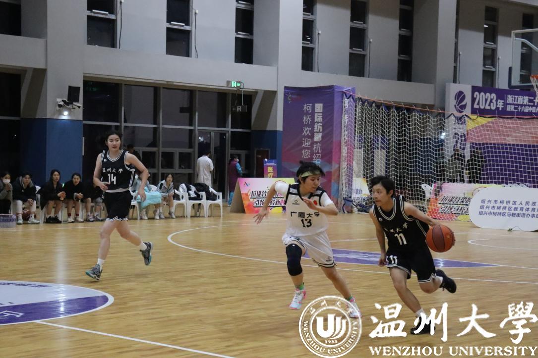 在11月14日-11月17日举行的小组赛中,温大公体女篮四战三胜,分别以53:27战胜浙江广厦大学,67:37战胜浙江万里学院,46:38赢下浙大城市学院,46:47一分之差惜败杭州商学院。