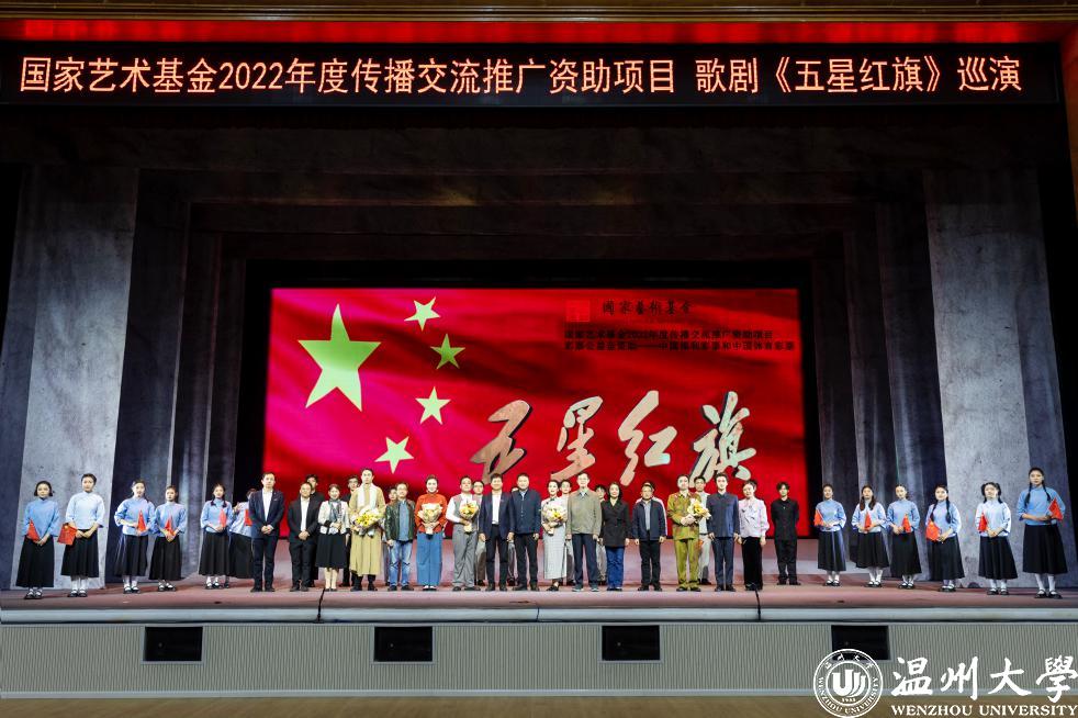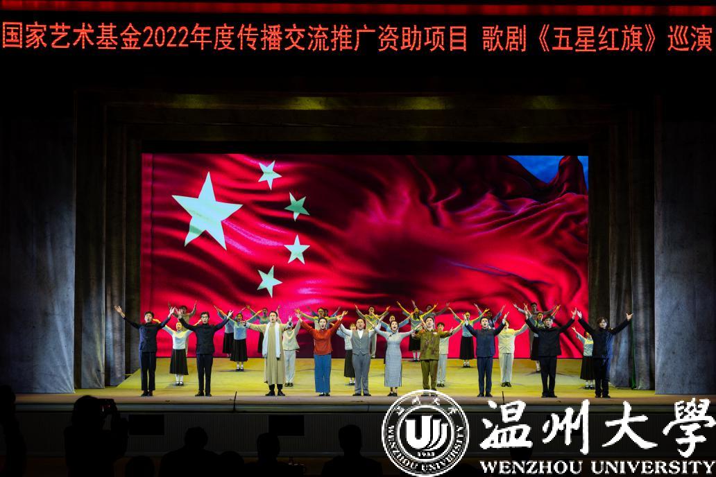 歌剧《五星红旗》于2019年国庆节在温州大剧院首演,座无虚席,好评如潮。本次巡演中,创演团队根据巡演要求,全新打造了巡演版歌剧《五星红旗》。巡演版时长70分钟左右,全体演职人员均为星空平台音乐学院师生,由第十一届中国音乐“金钟奖”获得者、青年歌唱家陈大帅老师,第九届“孔雀杯”高等艺术院校声乐展演综合师范院校教师美声组“金孔雀奖”第一名祝海燕老师,美国明尼苏达歌剧院、美国爱达荷歌剧院签约歌唱家张上老师和易雄志、许天明老师等担任主演。