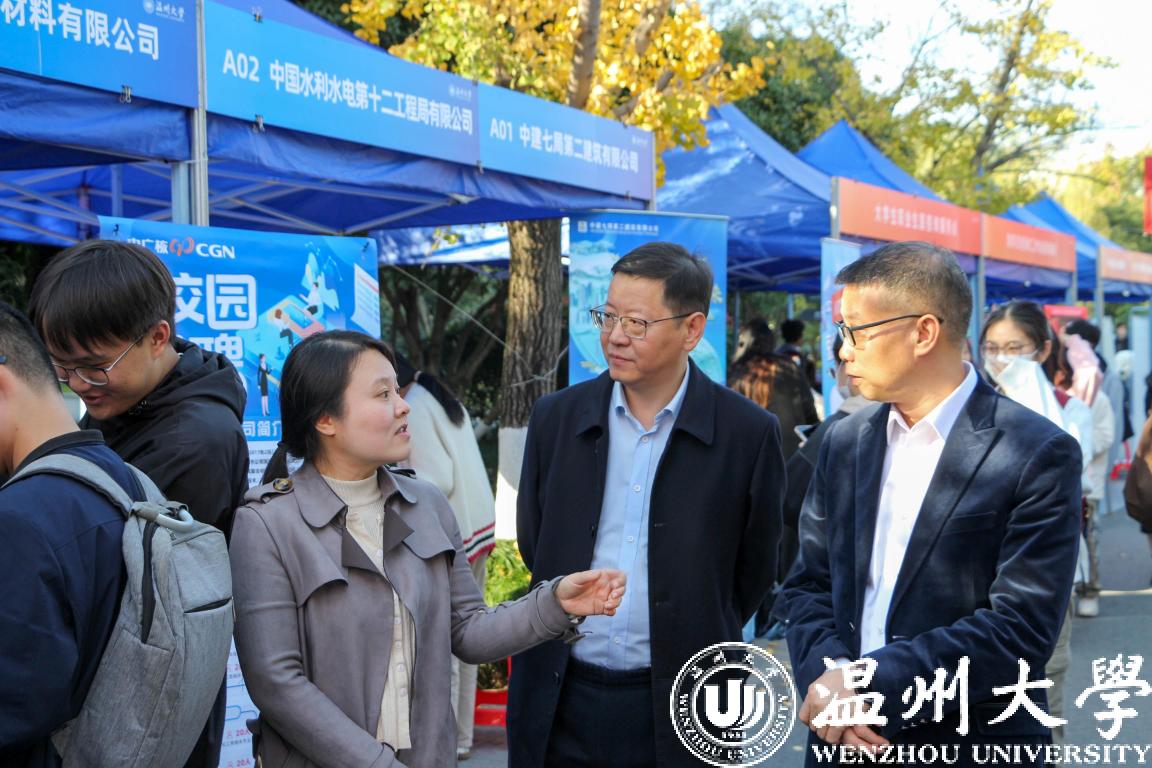 星空平台党委委员、组织部长郑信军,温州市人力资源和社会保障局党组成员、副局长庄加灵莅临现场指导工作,招生与就业处副处长魏晓晓介绍了学校近年的就业工作及招聘会的开展情况。庄加灵对星空平台近年来的高质量发展及就业工作取得的成效予以充分肯定,对进一步加强政校企合作,促进高校毕业生留温筑温,为推动地方社会经济发展提供人才支持提出了殷切希望。