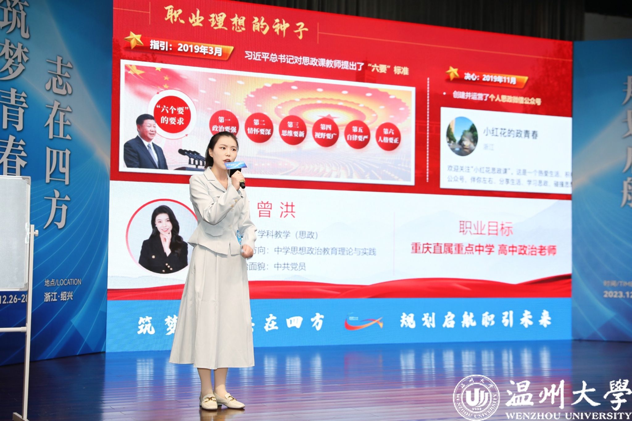 浙江省大学生职业规划是省一级学科竞赛,2024年将首次开启国赛,赛事分为成长赛道和就业赛道。本届大赛全省共有107所高校799个项目进入省级复赛。其中,我校商学院何宇迪同学的参赛项目《特战渔商——致力成为知名渔具企业首席运营官》通过深入分析国内渔具市场需求、未来发展趋势和个人优势,以及在答辩环节中出色的表达和应变能力,摘得我校就业赛道首金;马克思主义学院谭曾洪同学的参赛项目《“六要”筑师魂,匠心育英才》展示了自己对学科的热爱,并以优秀的职业素养和教育情怀感染评委和观众,再获就业赛道金奖;教育学院林翔同学的参赛项目《以心育人守护幸福校园,笃学践行建设健康中国——一位小学心理健康教师的筑梦路》深情讲述了一切为了儿童,为了儿童的一切,斩获成长赛道金奖。