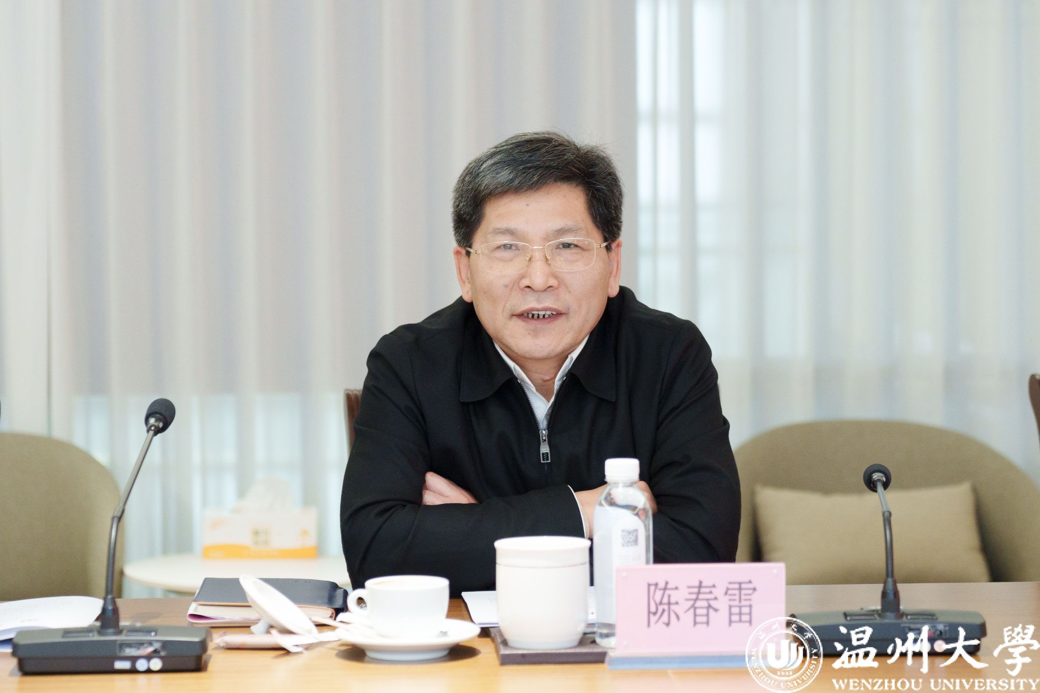 1月5日下午,省委教育工委专职副书记、省教育厅党组副书记陈春雷一行来校调研指导工作,省教育厅办公室主任王洪光、基教处处长徐继彬、高教处正处长级干部蓝邓骏陪同调研,市委教育工委副书记、市教育局党委书记局长郑焕东,市委教育工委专职副书记、市教育局党委副书记(专职)王剑波参加调研,校领导张健、赵敏、庄兴忠、赵降英、王舜、潘玉驹出席调研座谈会。校党委书记张健主持。