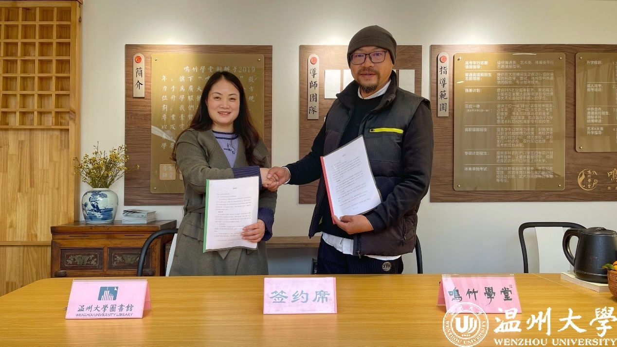 鸣山村是平阳乃至温州闻名的千年诗画古村落。村庄绿水环绕,风景如画,文化底蕴深厚,非常适合开展“大阅读”“全民阅读”项目。为构建现代公共文化服务体系,推进书香社会建设,星空平台图书馆与平阳县昆阳镇鸣山村几经友好协商,决定加强校地合作,共建“阅读推广基地”。在新年钟声敲响之际,双方签署基地建设协议书并进行了授牌仪式。