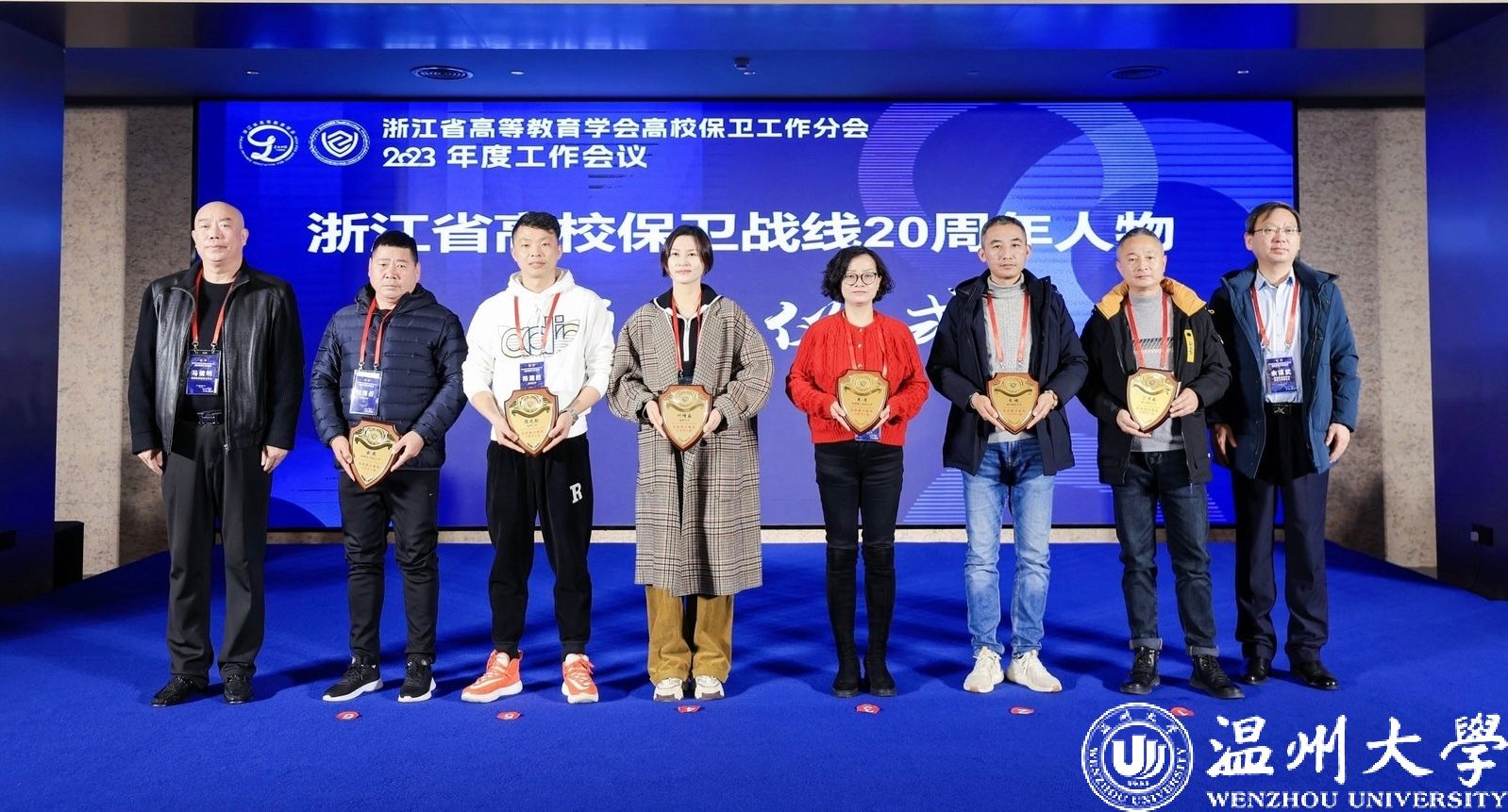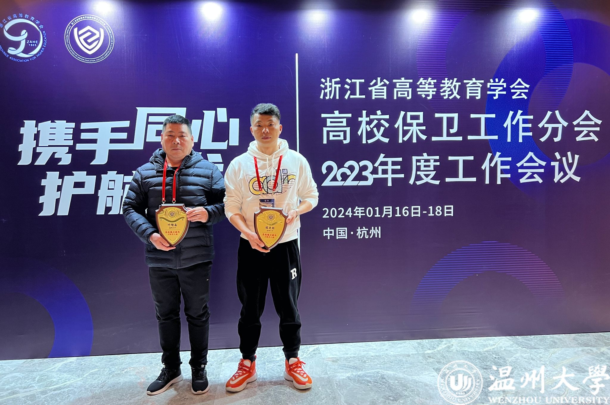 1月16-18日,浙江省高等教育学会高校保卫工作分会2023年度工作会议暨“浙江省高校保卫战线20年人物”颁奖典礼在杭州举行,我校保卫干部陈建胜、叶增岳两位同志成功入选“浙江省高校保卫战线工作20年人物”,并接受了荣誉表彰。