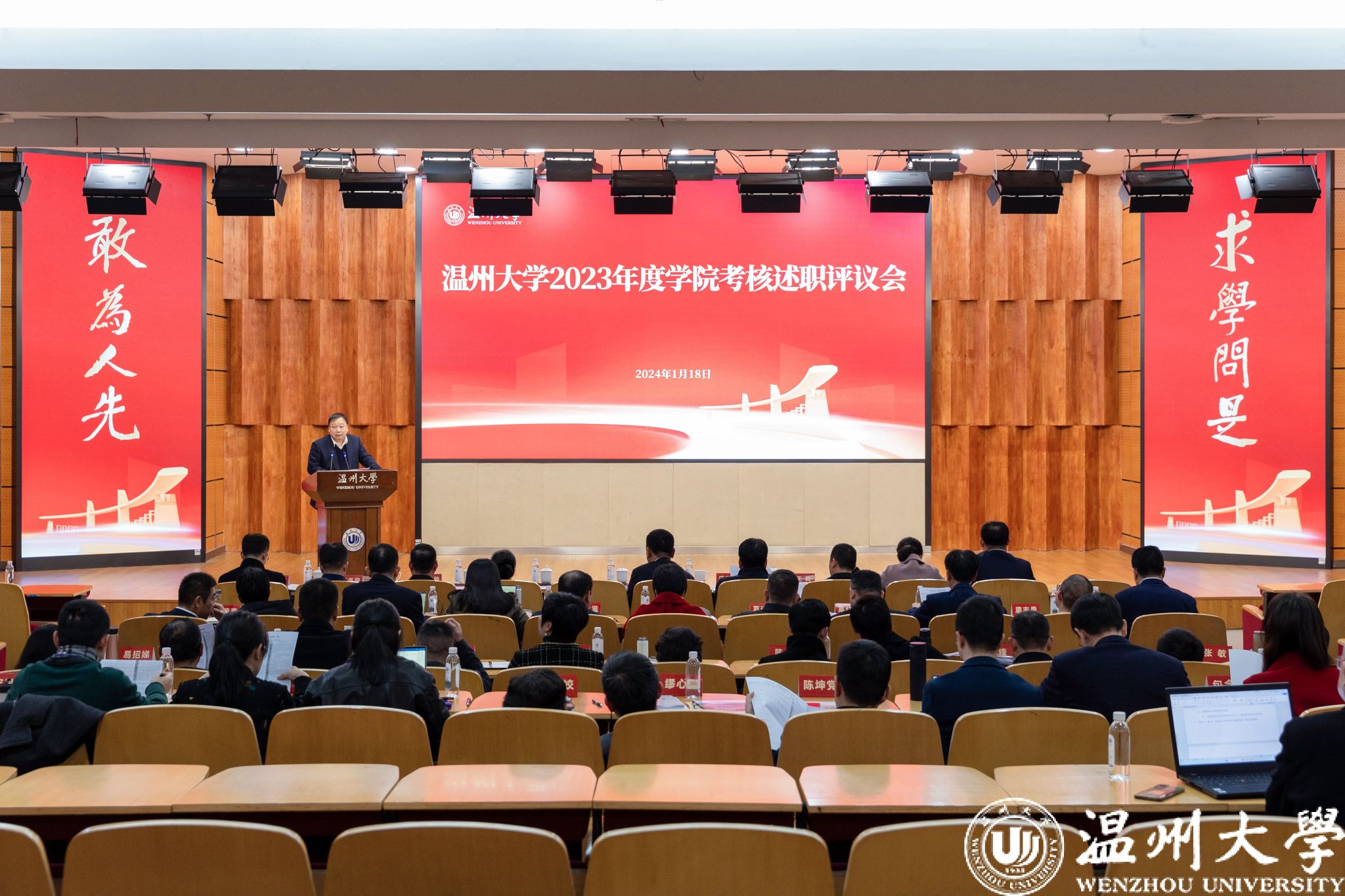会上,21个综合服务部门、14个业务发展部门、16个学院负责人进行了现场述职,全面汇报了2023年度各单位工作情况,既有业绩亮点、详实数据,也有问题分析、举措思路,还有肺腑之言、感人瞬间,向全校师生交出了一张张亮眼的“高分报表”、一份份优异的“高分答卷”,充分彰显出新时代温大师生敢为人先的精神风貌和破难攻坚的担当作为。