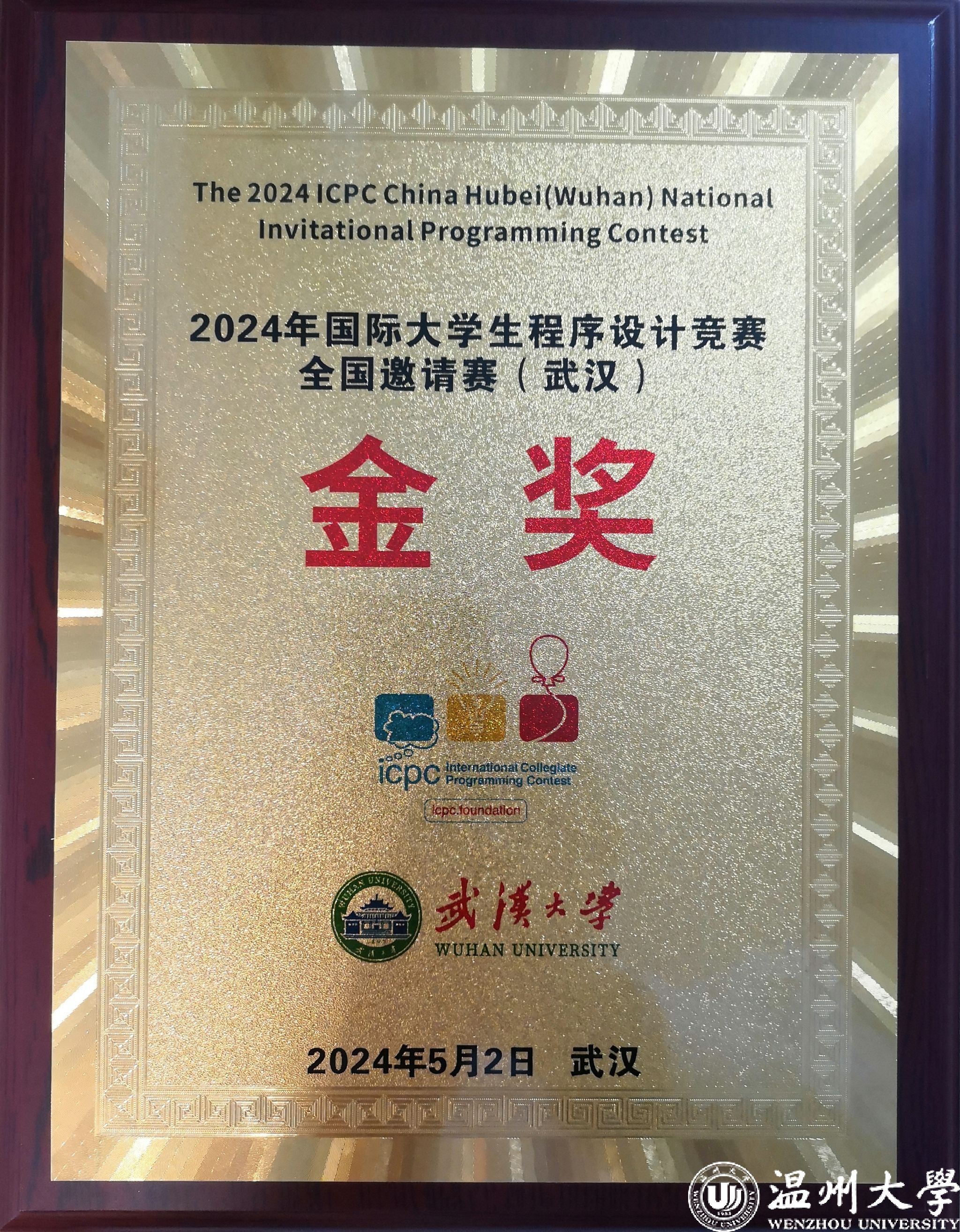 5月1至2日,2024年ICPC国际大学生程序设计竞赛全国邀请赛(武汉)在武汉大学举行,此次比赛吸引了来自203所高校的228支队伍参赛。我校两支代表队分别斩获一金一铜,创温州地区高校历年来最好成绩。其中,由计算机与人工智能学院学生何卓睿、毛烨超、杨嘉诚组成的“温大一队”斩获金奖,卢忠正、黄力垚、卢恒煜组成的“温大二队”夺得铜奖。