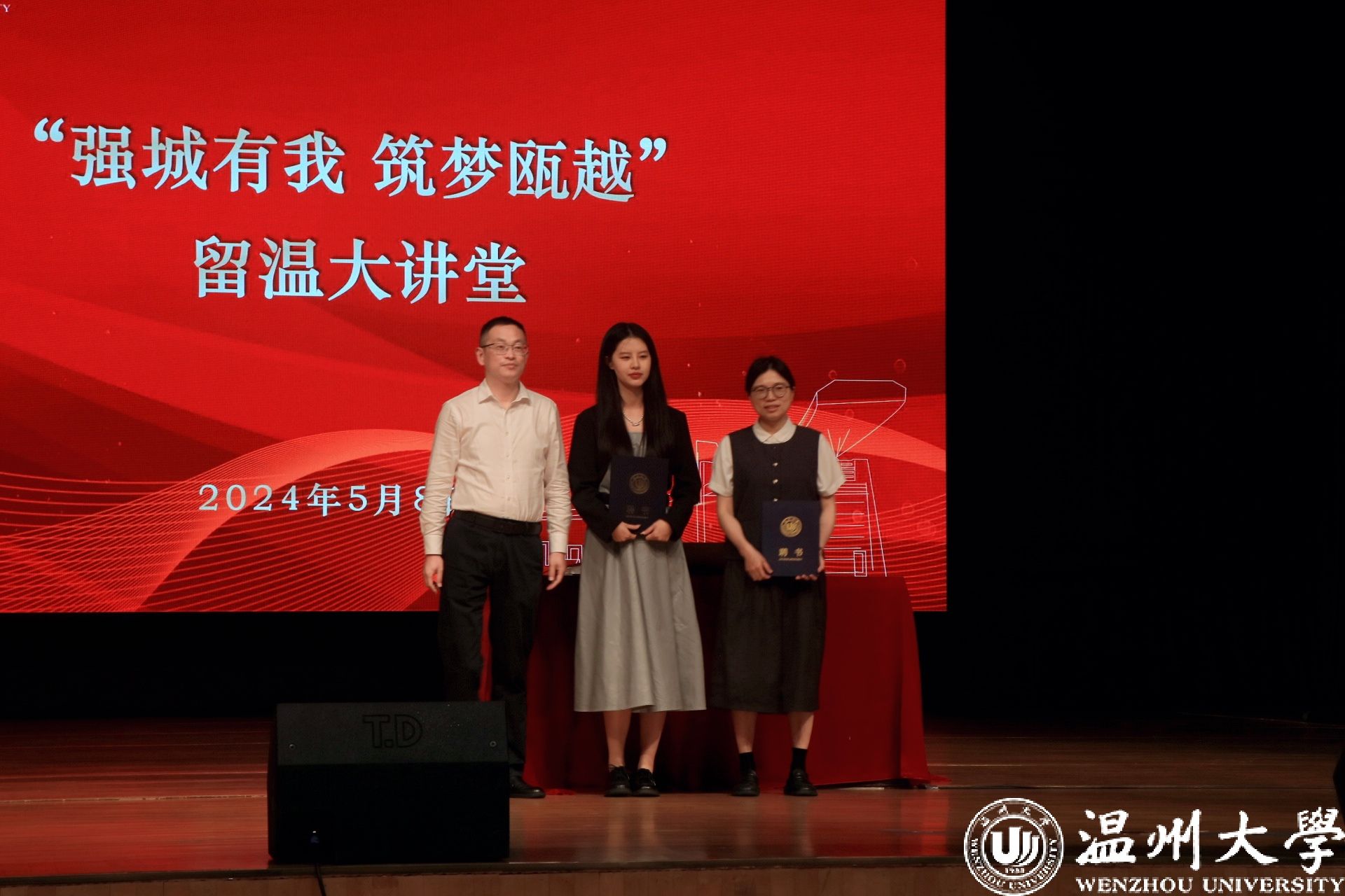课前,学校聘请温州市住房公积金管理中心鹿城管理部朱晓红、龙湾区投资促进局杨丽媛为留温政策师生宣讲团讲师,聘任正泰电器人力资源部副总经理周航为职业规划和就业指导校外导师并颁发证书。