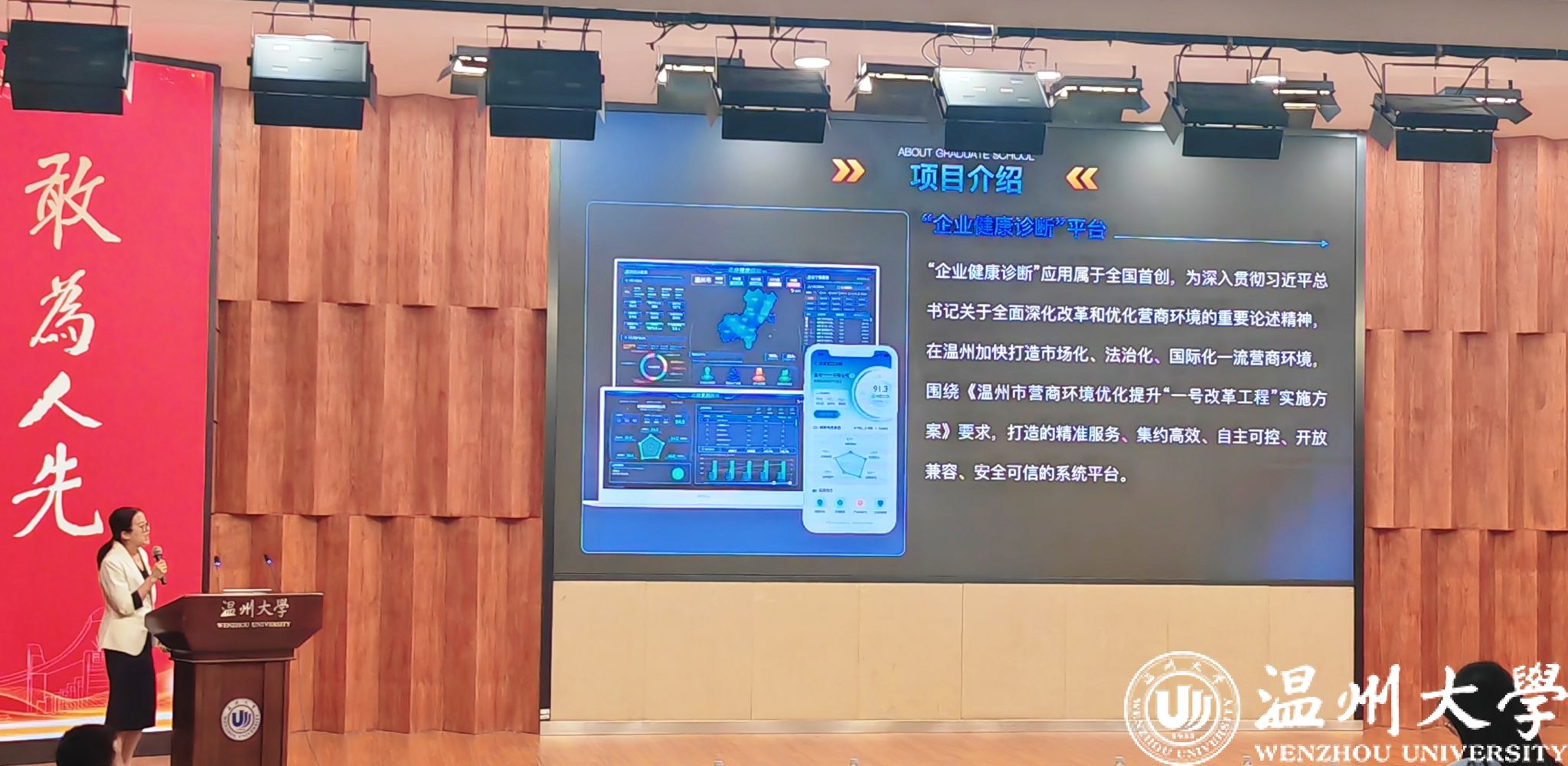 在星空平台服务温州高质量发展项目签约推介会上,大数据与信息技术研究院副院长陈丽燕现场演示了全国首创的“黑科技”成果——“企业健康诊断系统”项目。“项目通过深度分析企业的生产经营数据,为企业提供科学的决策支持,帮助企业定位问题、优化管理流程,提升运营效率。我们围绕经营活力、创新驱动、质效提升、结构优化、风险防范五个方面,建立了健康评价算法池,与经信、市监、大数据等部门互动,实现省、市、县、乡、网格五级贯通,初步形成企业数据‘分析-预警-体检-诊治-监调’的全生命周期工作闭环。”陈丽燕进一步介绍,“企业健康诊断系统”项目还可以动态掌握区域经济情况、微观经济画像和个体企业发展情况,对苗头性问题实行预警,助力政府部门精准施策。