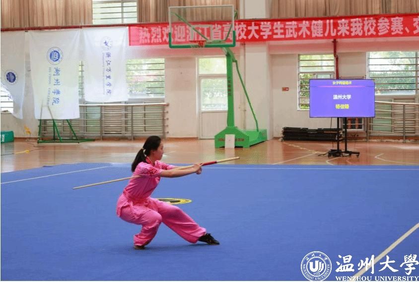 本次比赛由浙江省教育厅、浙江省体育局主办,来自全省47所本科院校,58支代表队,546名运动员、教练员、领队参加这场赛事。我校代表队由体育与健康学院副院长叶建强担任领队、教师周义义担任教练,队员有体育与健康学院、机电学院、计算机学院11名学生组成,参加南拳、长拳、刀术、剑术、棍术等武术项目和跆拳道个人品势的比赛。