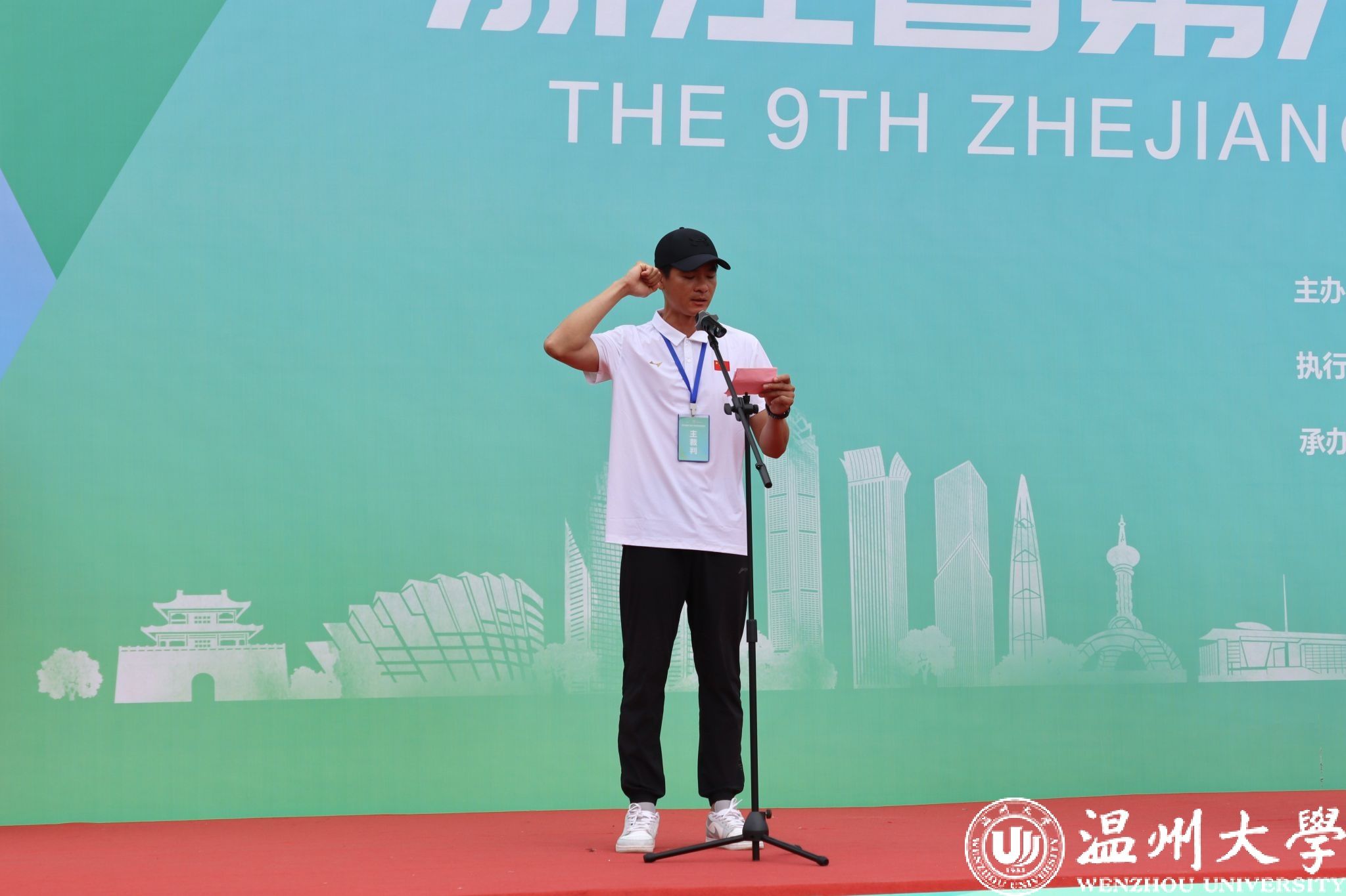 王尧骏致欢迎辞。他表示,面对这场体育文化交流的盛会,我校始终坚持立德树人工作主线,持续推动田径项目高水平发展为目标,充分发挥其在以体育人过程中的基础功能,在助力地方体育人才培养、服务区域体育赛事发展、提升阳光体育工作成效方面体现温大担当。希望于本次比赛中强化赛事保障的同时,进一步推进交流互鉴,发扬竞技精神!