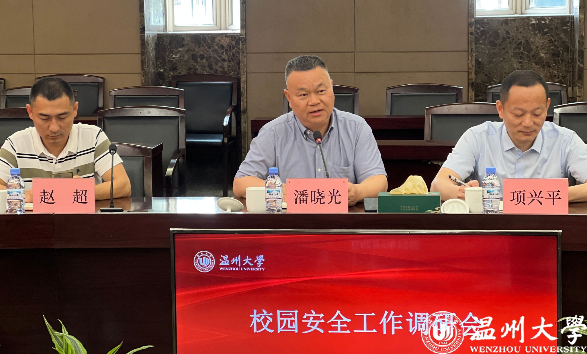 庄兴忠代表学校对市平安督导组一行莅临我校调研指导校园安全工作表示欢迎,向各级领导及属地各职能部门长期以来对我校安全工作的关心、指导和支持表示感谢。他汇报了我校平安校园建设工作的基本情况、特色亮点以及相关问题举措等情况。他表示我校党政一直以来高度重视校园安全稳定工作,认真贯彻落实上级有关校园安全工作的重要批示精神和部署要求,扎实推进校园各项安全工作落实落细落地,切实提升校园安全综合治理效能,进一步推进了平安校园建设,为学校争创5A级平安校园奠定坚实基础,为学校高质量发展保驾护航,为平安温州建设贡献温大力量。