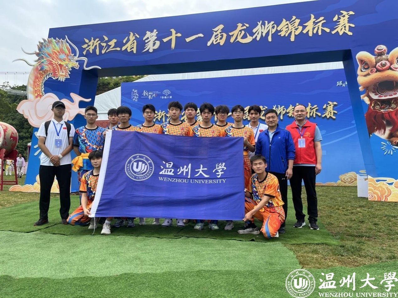 本次比赛由浙江省体育总会、长兴县人民政府主办,来自我省各地市(区、县、市)、大专院校、龙狮俱乐部等单位的35支龙狮队伍510余位龙狮高手参加了此次龙狮锦标赛。我校队伍由体育与健康学院副院长叶建强担任领队、体育教育系副主任周义义老师带队参赛,队员由体育与健康学院12名学生组成。