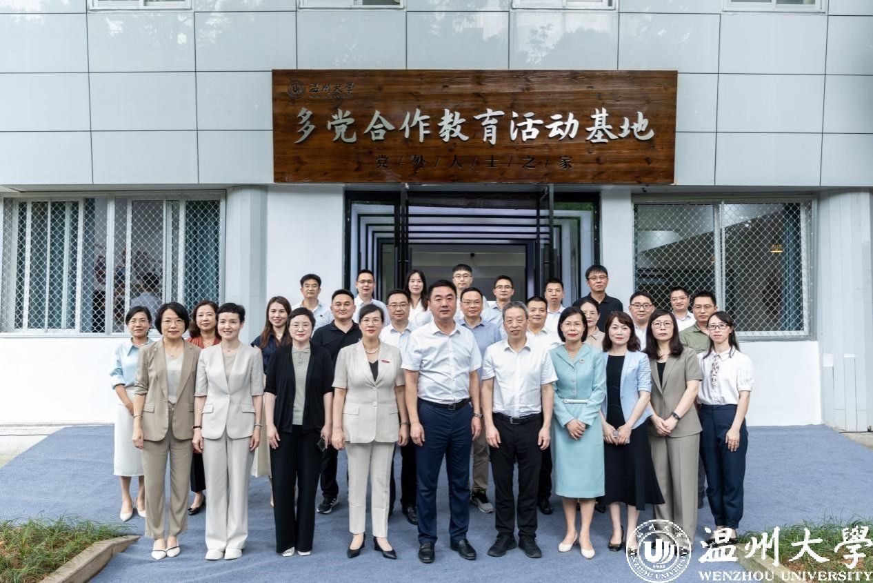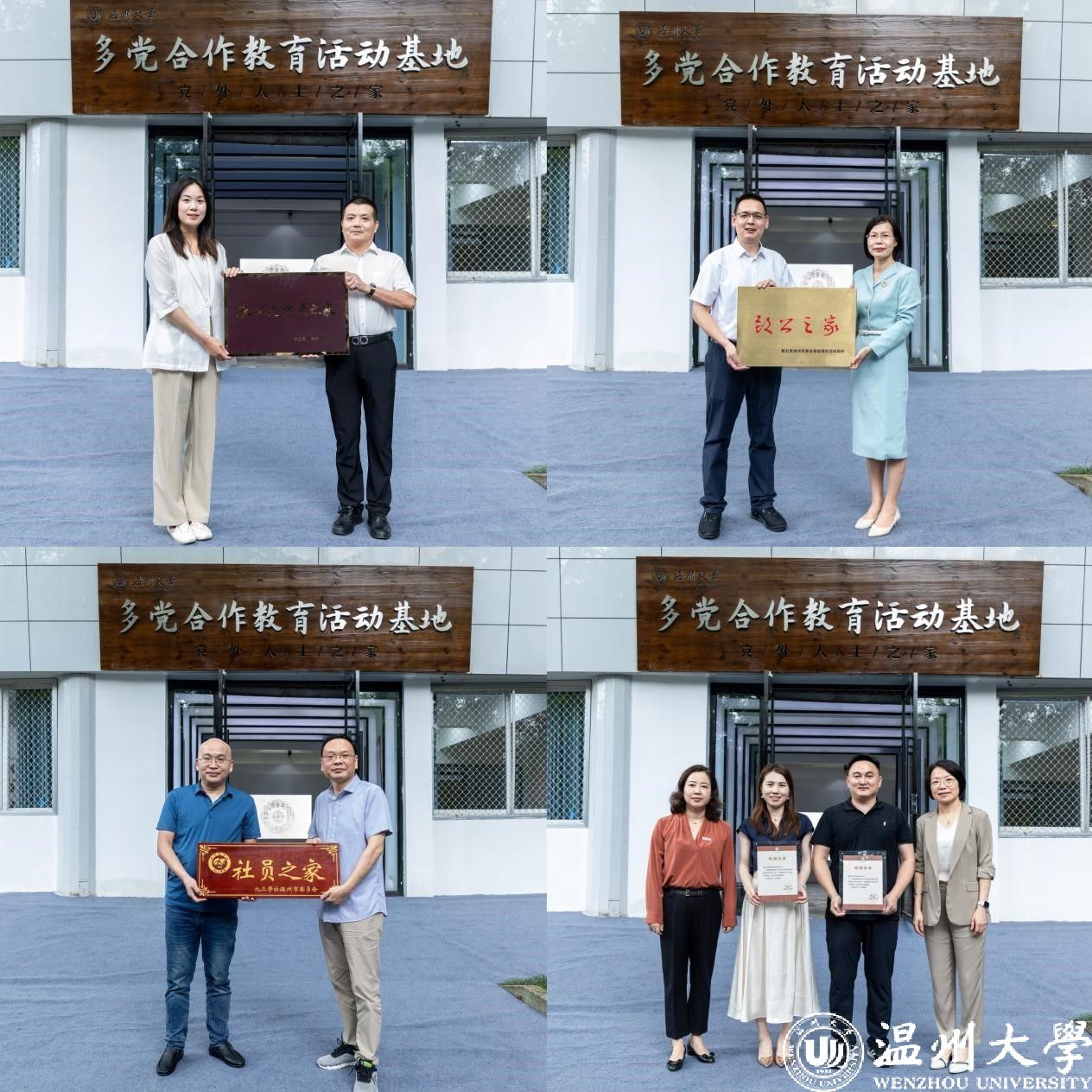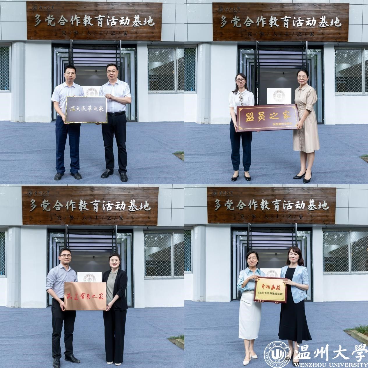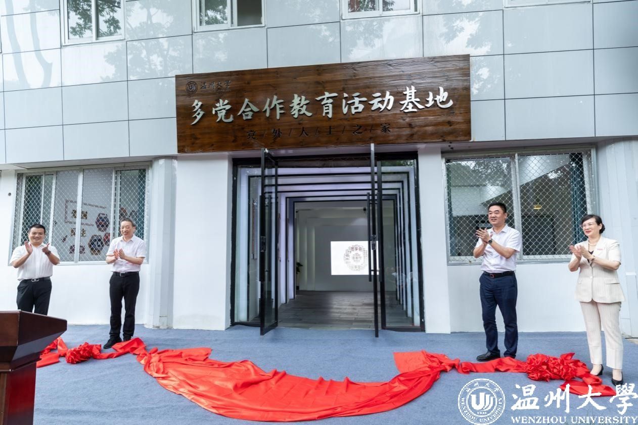 校党委书记钱强、副书记赵降英、温州市委统战部常务副部长叶军,农工党温州市委会专职副主委陈伟峰共同为多党合作教育活动基地揭牌。