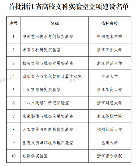 近日,浙江省教育厅公布首批浙江省高校文科实验室立项建设名单,我校“生态文明与环境治理实验室”成功入选,成为首批浙江省高校文科实验室建设立项单位,全省仅十家。