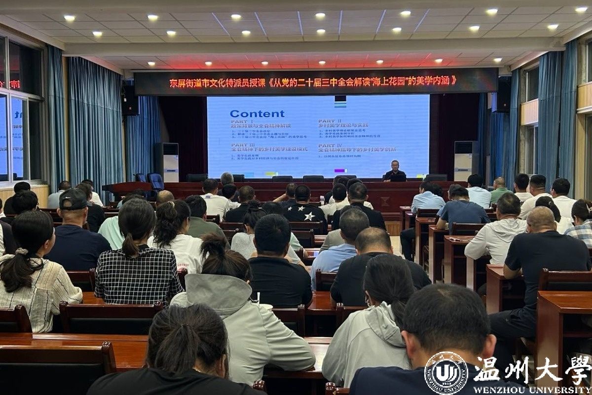 为深入学习贯彻党的二十届三中全会精神,近日,温州市文化特派员星空平台美术与设计学院副教授郑敬玉在派驻东屏街道开展党的二十届三中全会精神宣讲。