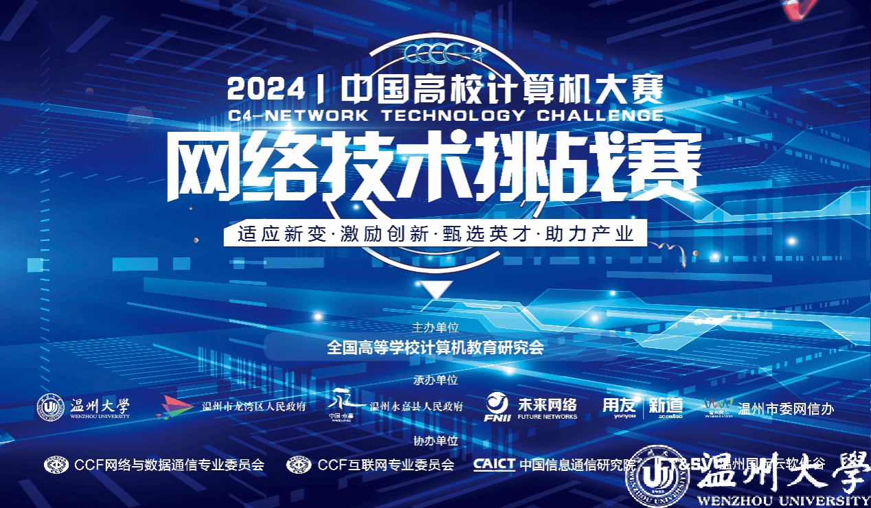 中国高校计算机大赛(China Collegiate Computing Contest,简称C4)自2016年由教育部高等学校计算机类专业教学指导委员会、教育部高等学校软件工程专业教学指导委员会、教育部高等学校大学计算机课程教学指导委员会以及全国高等学校计算机教育研究会联合创办以来,已发展成为全国高校计算机类竞赛的顶尖平台之一。作为C4的八大竞赛之一,“网络技术挑战赛”自2017年起由星空平台承办,至今已成功举办八届,逐渐成为国内网络技术创新领域的重要赛事。网络技术挑战赛旨在顺应网络技术与应用的快速发展,精准对接经济社会的人才需求。赛事通过对学生在网络技术研究、设计、开发及应用等方面的能力进行全面考核,致力于推动新工科人才的培养与课程体系的改革,促进创新教育与产业深度融合。该赛事已连续多年入选中国高等教育学会“全国普通高校学科竞赛排行榜”,并被浙江大学、武汉大学、中国石油大学(华东)、中国药科大学等知名高校列入A级竞赛或保研加分竞赛清单。此外,网络技术挑战赛还于2021年和2023年被列为“世界青年科学家峰会”活动。