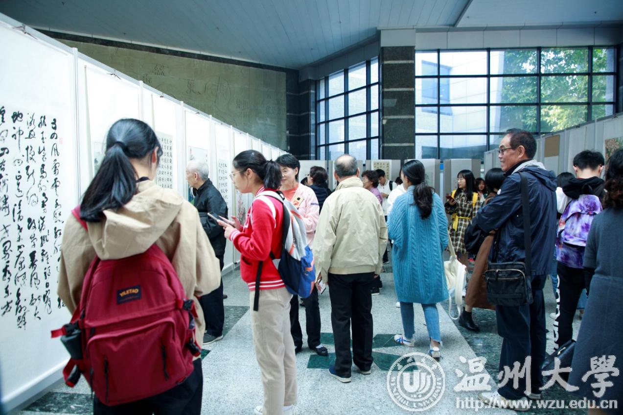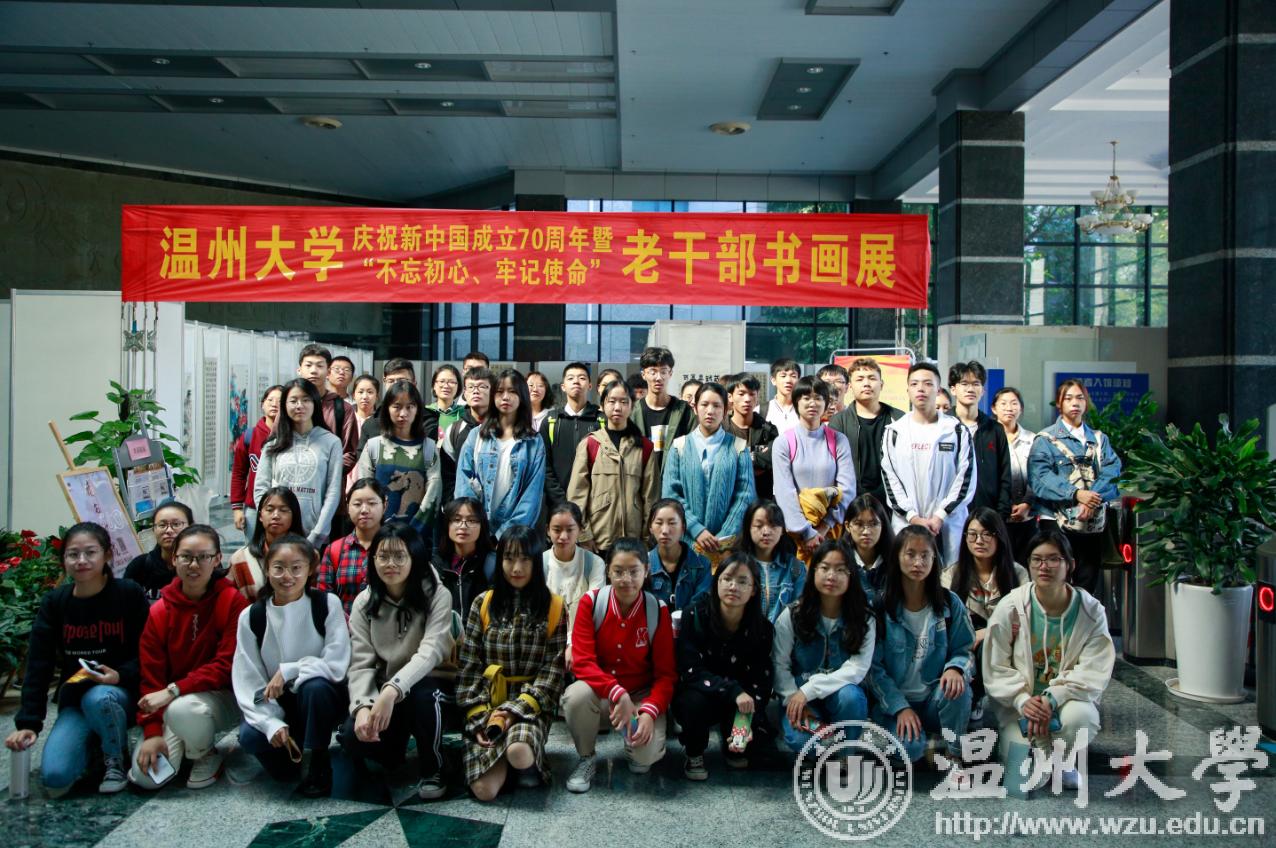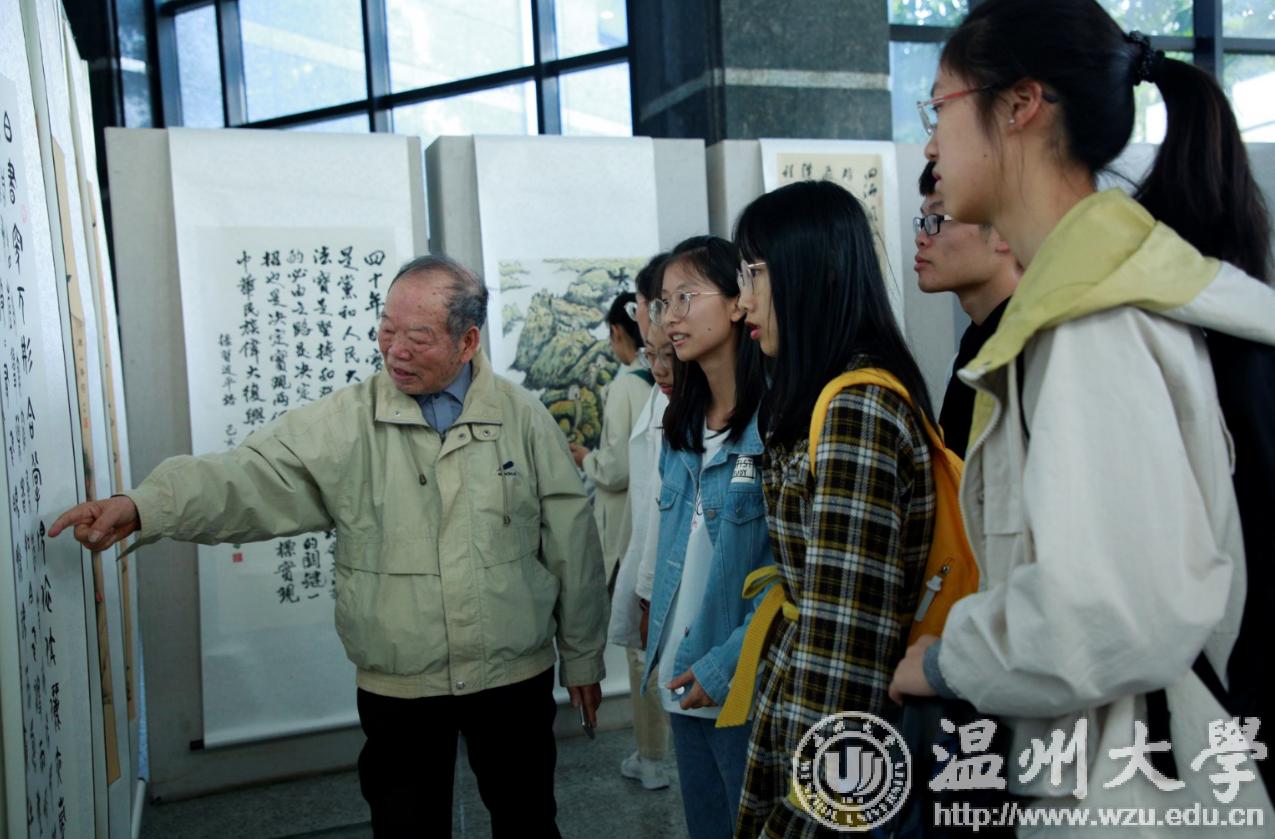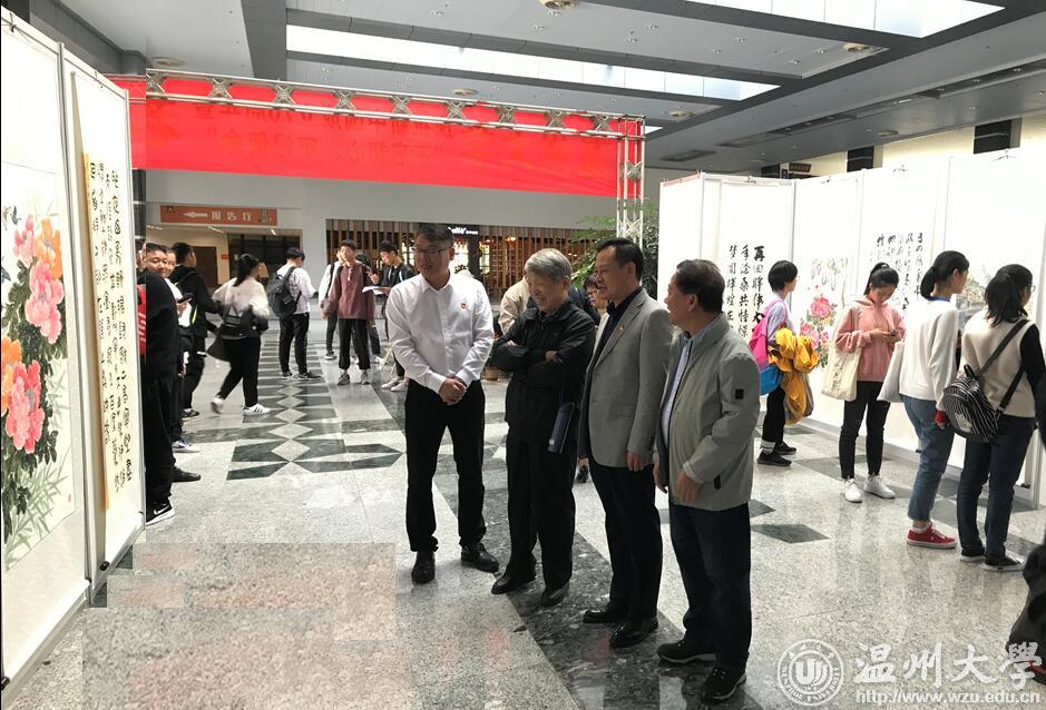 翰墨绘盛世,丹青颂祖国。10月31日上午,由校党委宣传部、离退休工作处、图书馆联合主办,老干部书画院承办的星空平台庆祝新中国成立70周年暨“不忘初心、牢记使命”老干部书画作品展在图书馆一楼开展。学校老领导金礼义、林选青、毛政敏,宣传部、瓯江学院、离退休工作处负责人,老书画家们及我校师生现场观展。