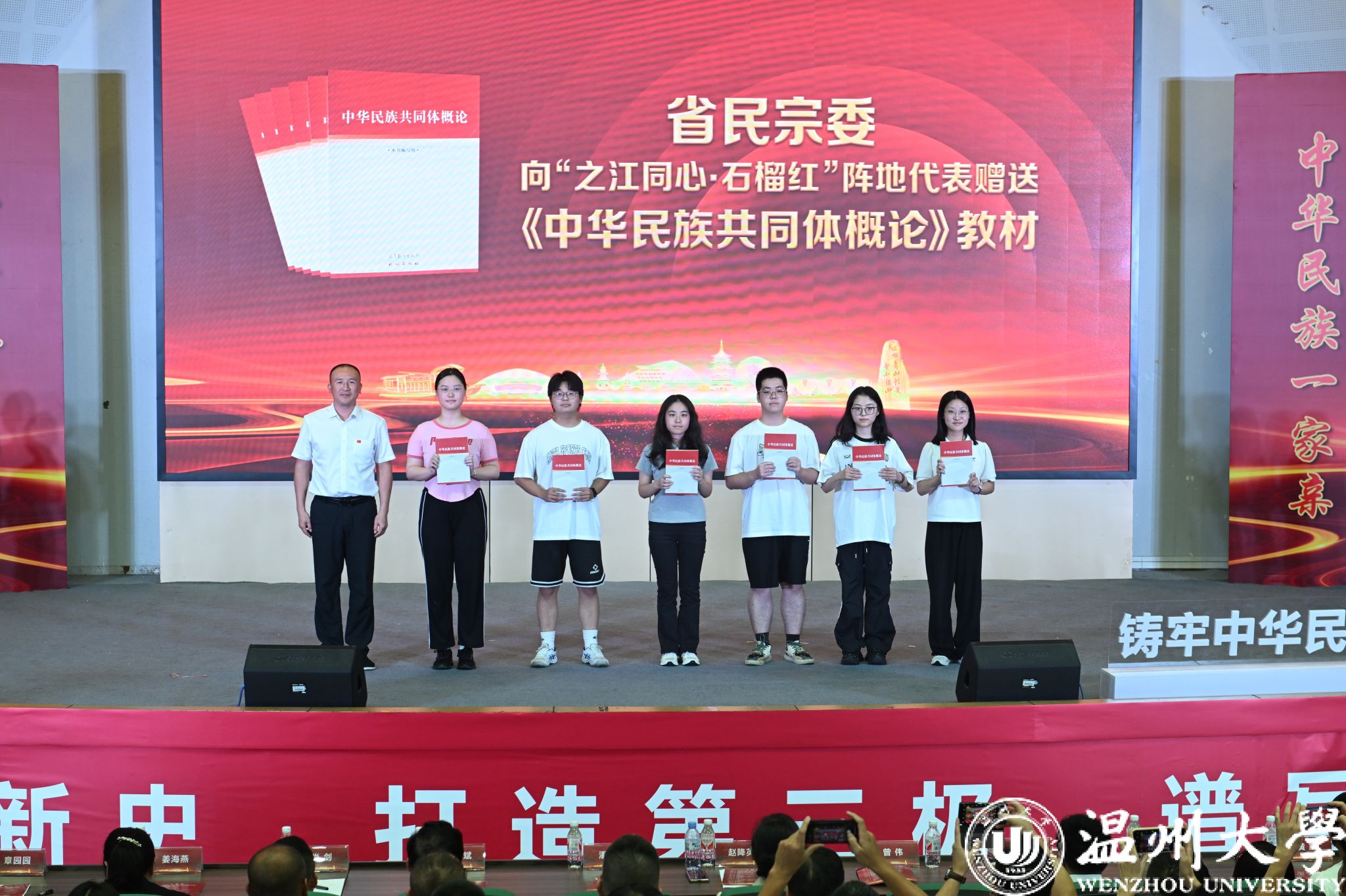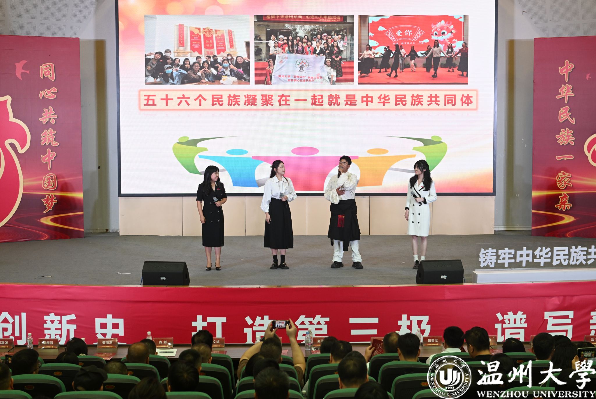 瓯越同心助强城,中华民族一家亲。9月11日,“庆祝中华人民共和国成立75周年·铸牢中华民族共同体意识”2024年度全省专题巡回宣讲活动(温州站)暨温州市2024年民族团结进步宣传月活动启动仪式在我校举行。