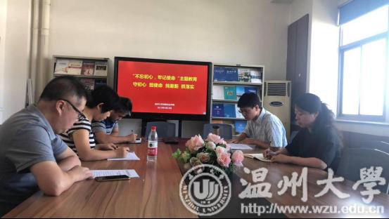 【机关党委第七支部】进一步明确认真贯彻“守初心、担使命,找差距、抓落实”总要求,准确把握目标任务,全力做好学习教育、调查研究、检视反思和整改落实工作。要深入学习贯彻习近平新时代中国特色社会主义思想,自觉践行党的根本宗旨,筑牢党长期执政最可靠的阶级基础和群众根基;要在各自工作岗位上,深入师生中间,倾听师生意见,想师生所想,急师生所急,密切同广大师生群众的紧密联系,着力解决师生群众最关心最现实的问题。强调高校里教学科研是主业,师生是主体,为师生服务就是为发展服务,就是为大局服务,就是为党的教育事业服务;联系师生是最大的优势,脱离师生是最大的危险,服务师生是最大的责任;联系师生要沉得下去,才能发现问题、了解需求、寻求真经,还要浮得上来,才能解决问题、以点带面、指导工作;为了更好地为师生服务,要牢固树立服务意识,积极主动的开展服务,要加强学习,提高服务的本领,要经常开展工作反思,在反思中提高水平。