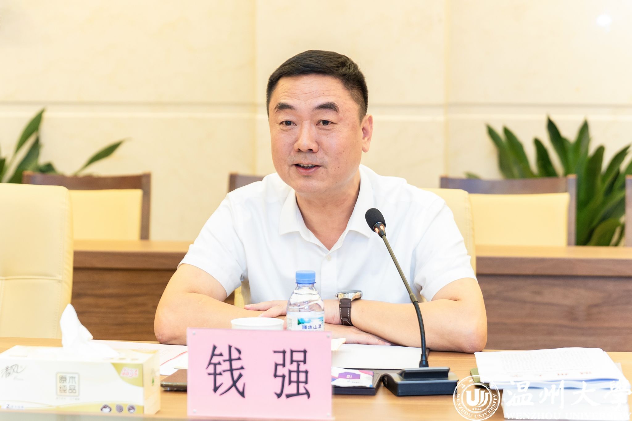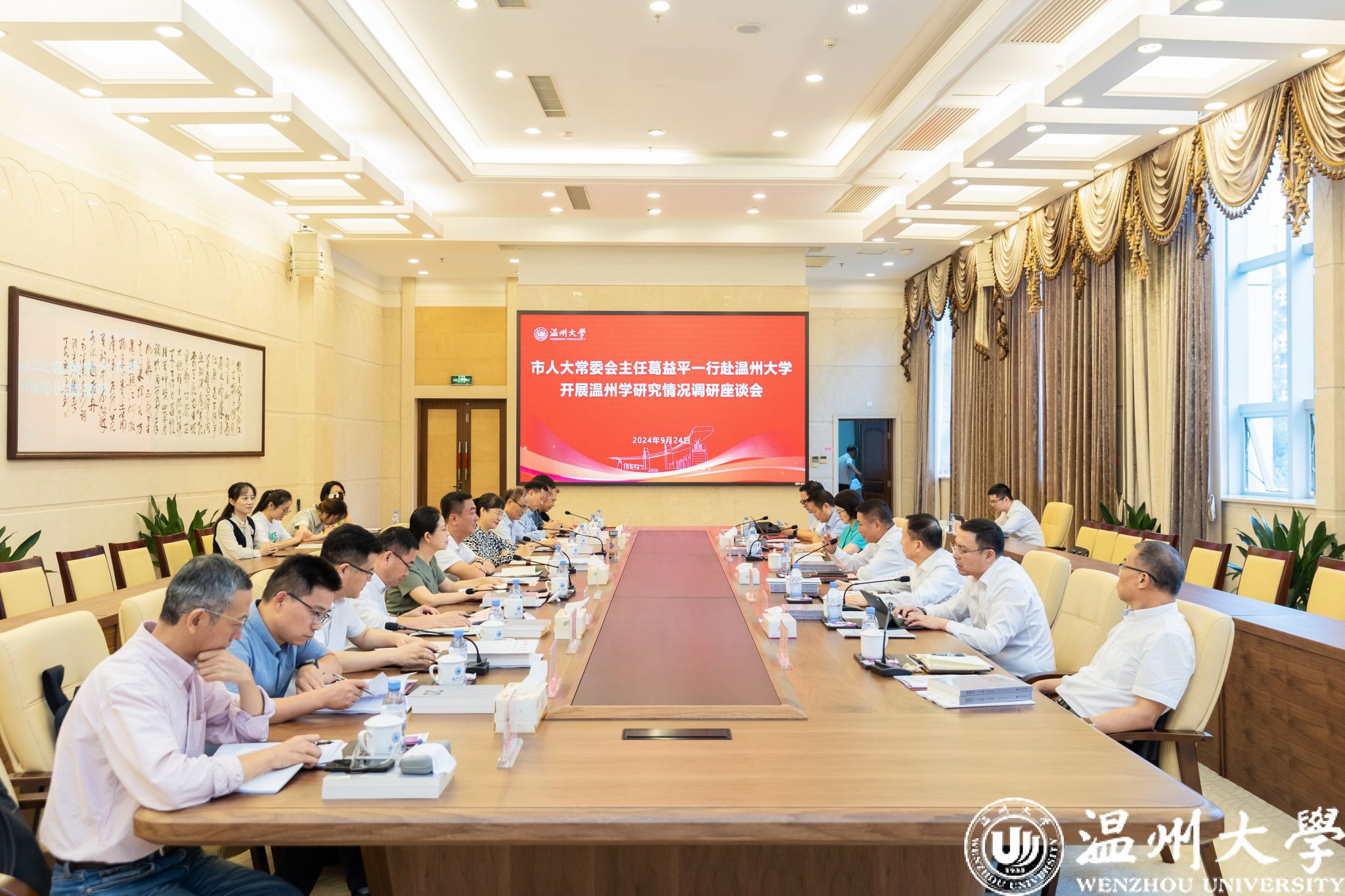 9月24日上午,温州市人大常委会主任葛益平一行来校开展温州学研究调研工作并召开专题座谈。市人大常委会秘书长刘峰、副秘书长余爱玉,市社科联主席潘晓勇,市十三届人大常委会副秘书长叶育登、委员金浩,市社科联副主席倪考梦等陪同,校党委书记钱强、副书记赵降英、副校长刘玉侠出席座谈会,相关处室负责人及部分温州学研究专家参加座谈。