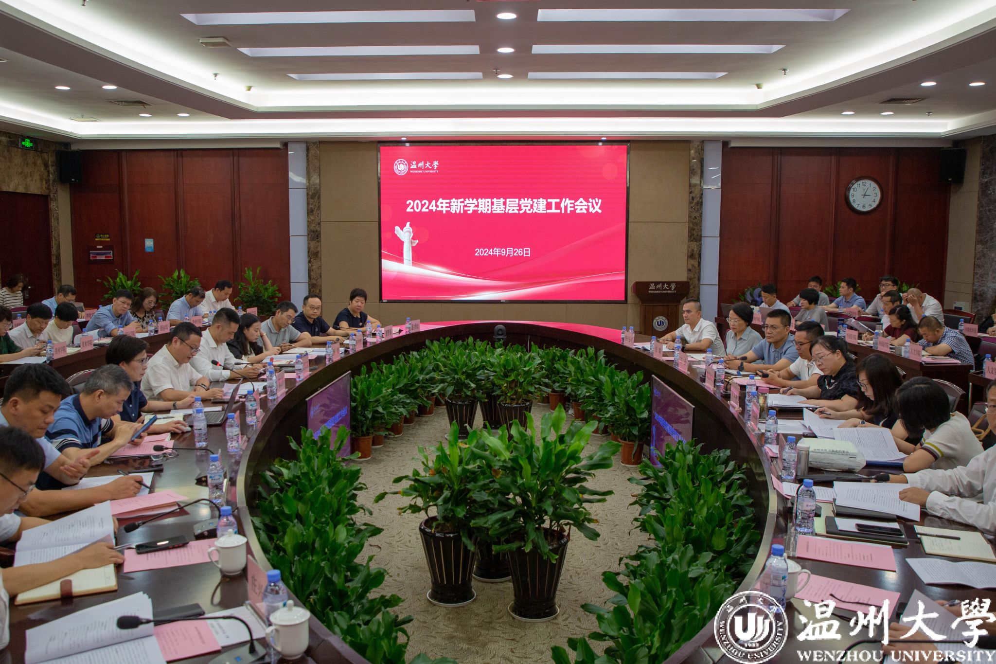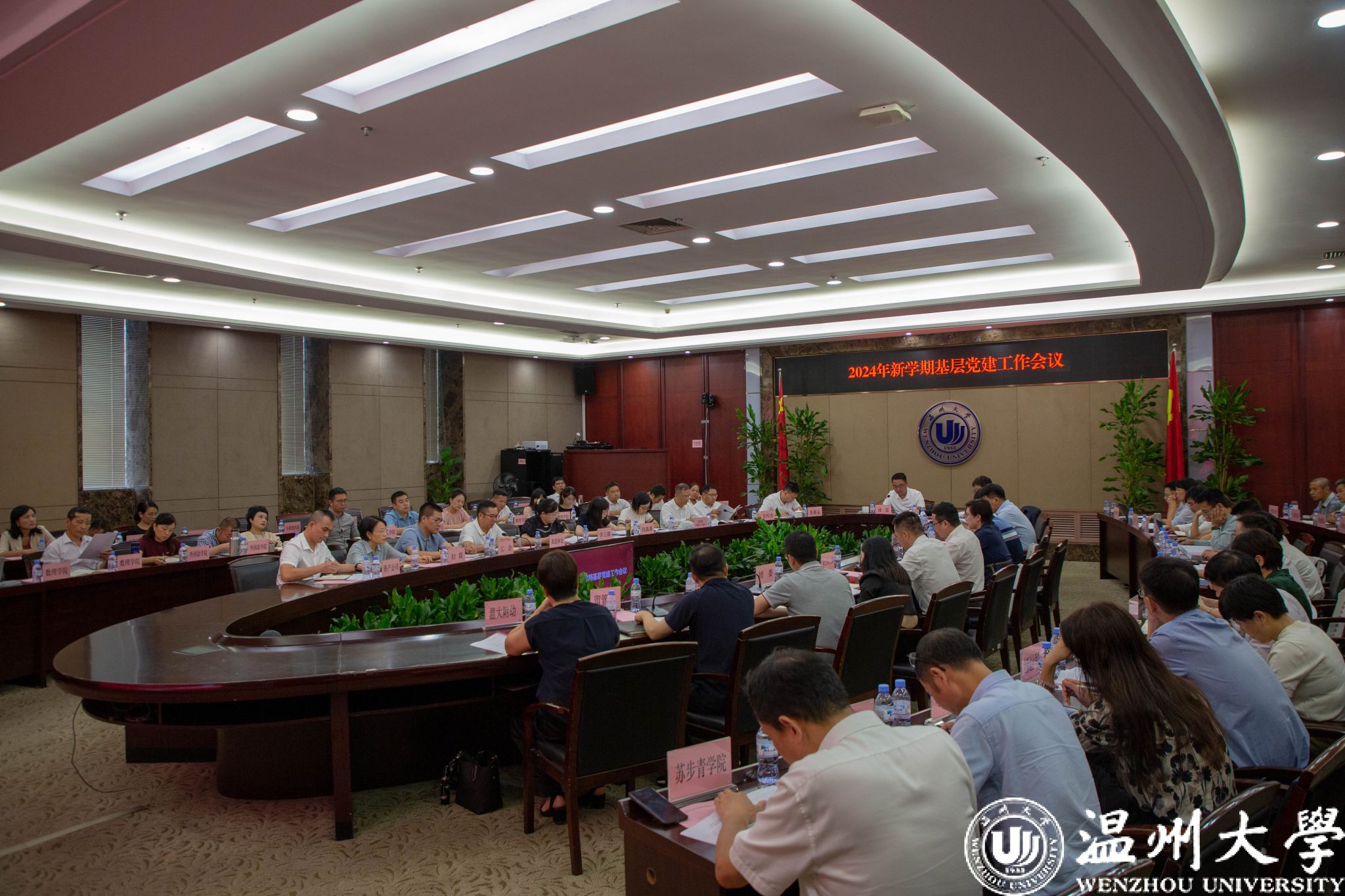 9月26日下午,我校召开2024年秋季新学期基层党建工作会议。校党委书记钱强,党委副书记庄兴忠,党委委员、纪委书记李都金,党委委员、组织部部长夏春雨出席,学校党群部门负责人,各学院党委书记、副书记、组织员参加会议。