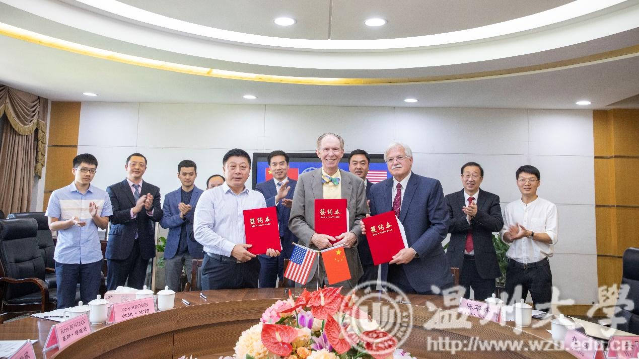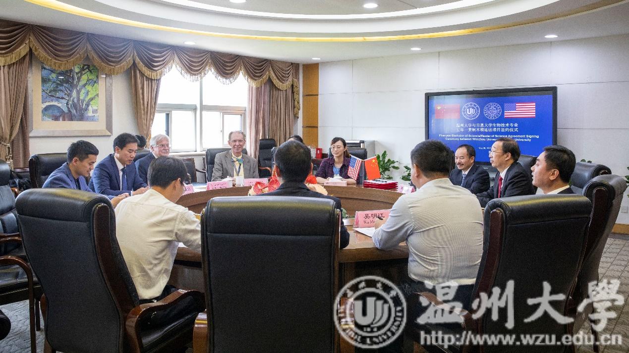 5月29日下午,美国肯恩大学新泽西州STM中心院长基斯·博斯廷(Keith Bostian)、温州肯恩大学学术副校长杨毅欣、温州肯恩大学理工学院院长拉里·布朗(Larry Brown)等一行来访我校,签署五年制生物技术专业本硕连读项目。副校长钱强,生命与环境科学学院、国际处相关负责人出席仪式。
