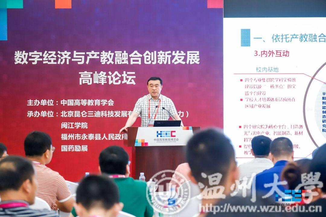 由中国高等教育学会主办,以“讴歌新中国70年辉煌成就 推进教育现代化创新发展”为主题的中国高等教育博览会于5月26-28日在福州召开,副校长薛伟受邀在数字经济与产教融合创新发展高峰论坛上作“‘一核多点、内外互动’的地方高校产城融合人才培养模式创新与实践”主题报告。